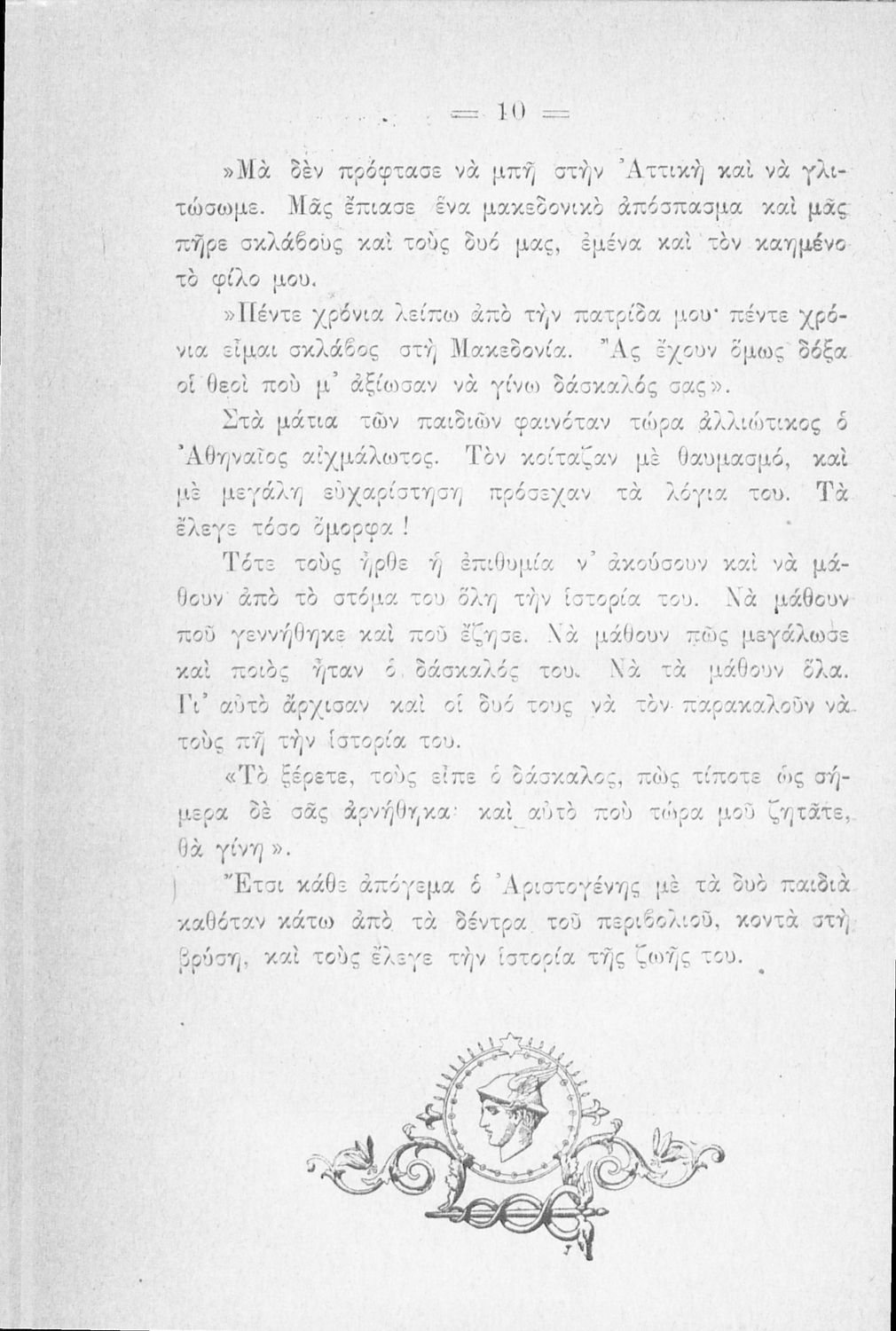 Αναγνωστικό Δ' Δημοτικού για το μαθήματα της Γλώσσας. Περιλαμβάνει πεζά και ποιήματα με περιεχόμενο από την οικογενειακή και κοινωνική ζωή. Τα ποιήματα έχουν εθνικό και πατριωτικό περιεχόμενο. Στο τέλος του βιβλίου υπάρχουν παρτιτούρες τραγουδιών.