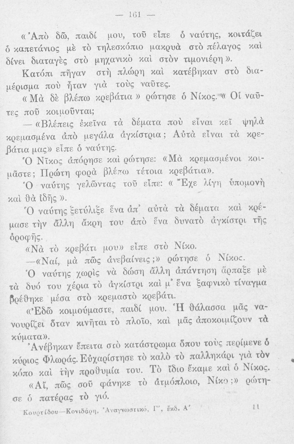 Σχολικό εγχειρίδιο για το μάθημα της Γλώσσας στο Δημοτικό. Πρόκειται για Αναγνωστικό περιέχει δυο μέρη. Στο πρώτο περιλαμβάνονται ποικίλα διηγήματα, ιστορήματα, περιγραφές, παροιμίες, γνωμικά και ποιήματα. Στο