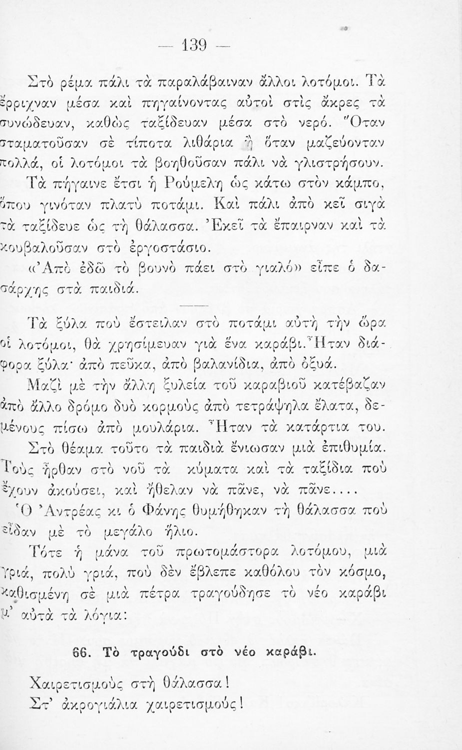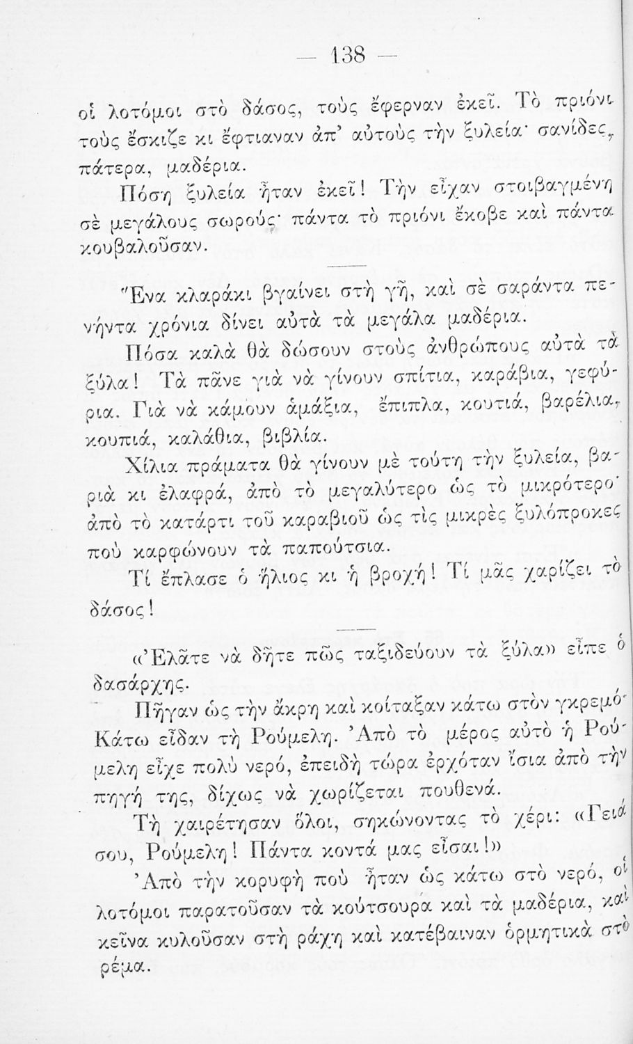 Αναγνωστικό για την Γ΄ Δημοτικού. Περιλαμβάνει μια αφηγηματική ιστορία, η οποία εμπεριέχει ηθικά διδάγματα για την ηθικοπλαστική καλλιέργεια των μαθητών. Η γλώσσα είναι δημοτική και το ύφος απλό. Στο παράρτημα περιλαμβάνει ποιήματα και τραγούδια.