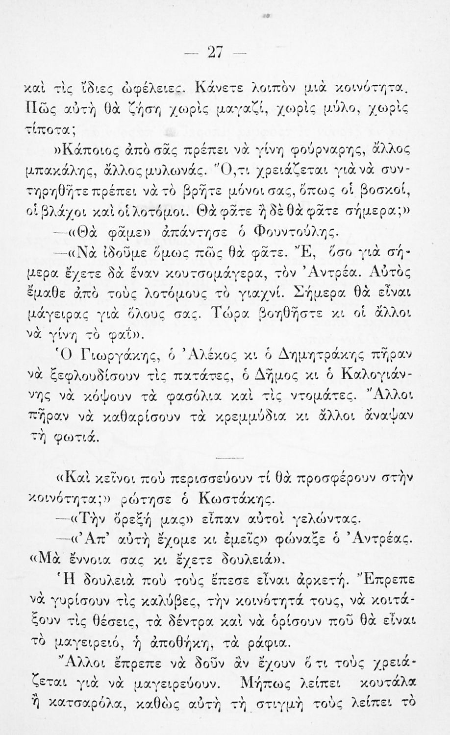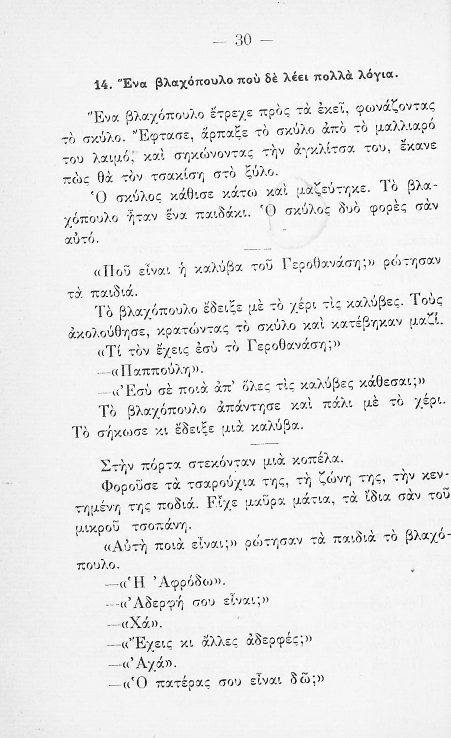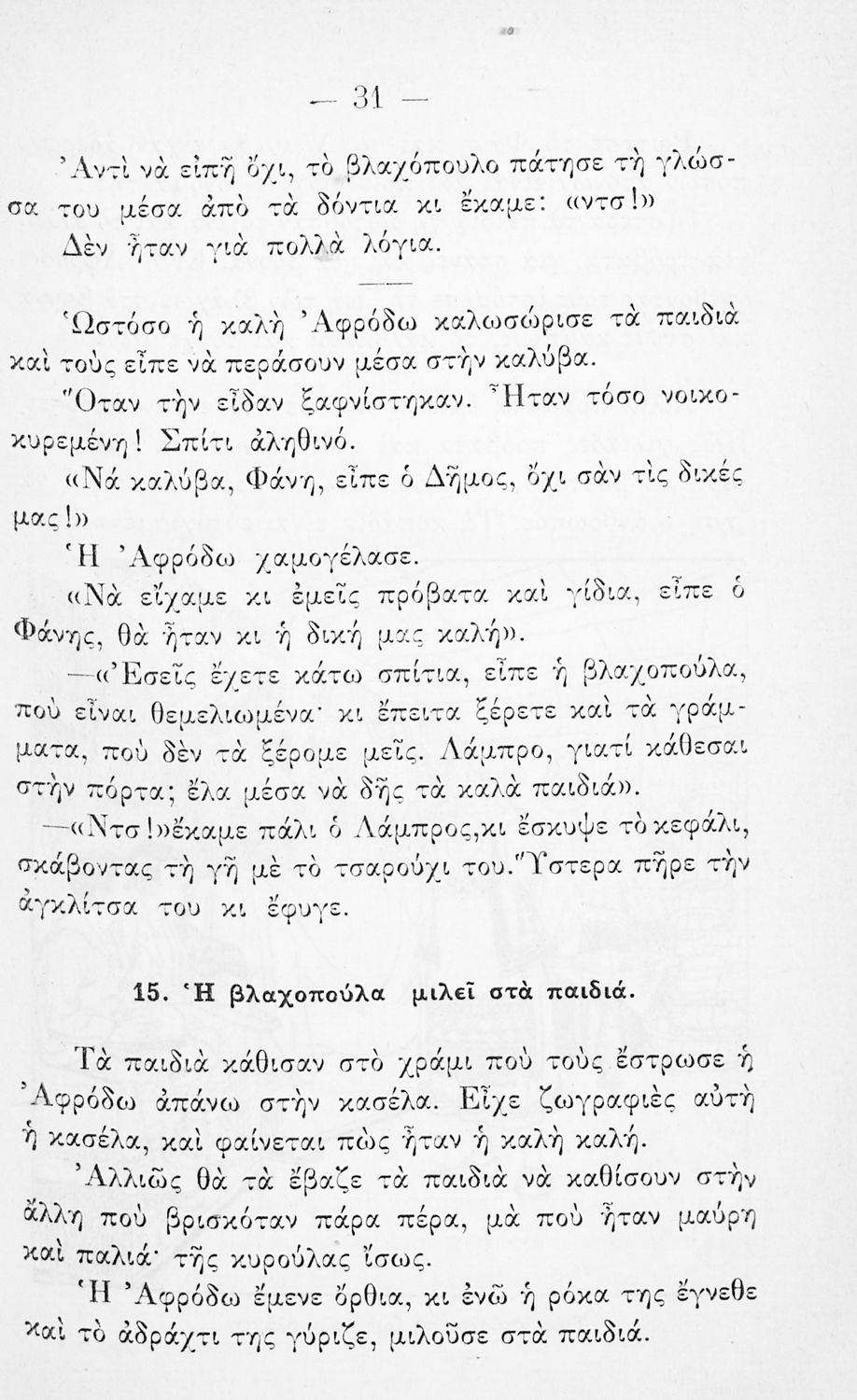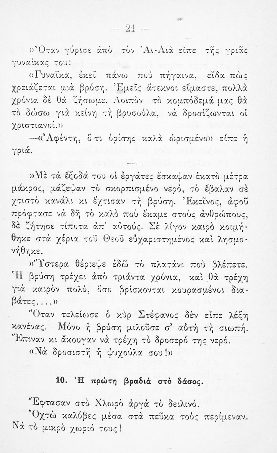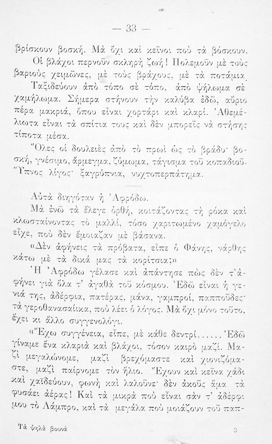Αναγνωστικό για την Γ΄ Δημοτικού. Περιλαμβάνει μια αφηγηματική ιστορία, η οποία εμπεριέχει ηθικά διδάγματα για την ηθικοπλαστική καλλιέργεια των μαθητών. Η γλώσσα είναι δημοτική και το ύφος απλό. Στο παράρτημα περιλαμβάνει ποιήματα και τραγούδια.