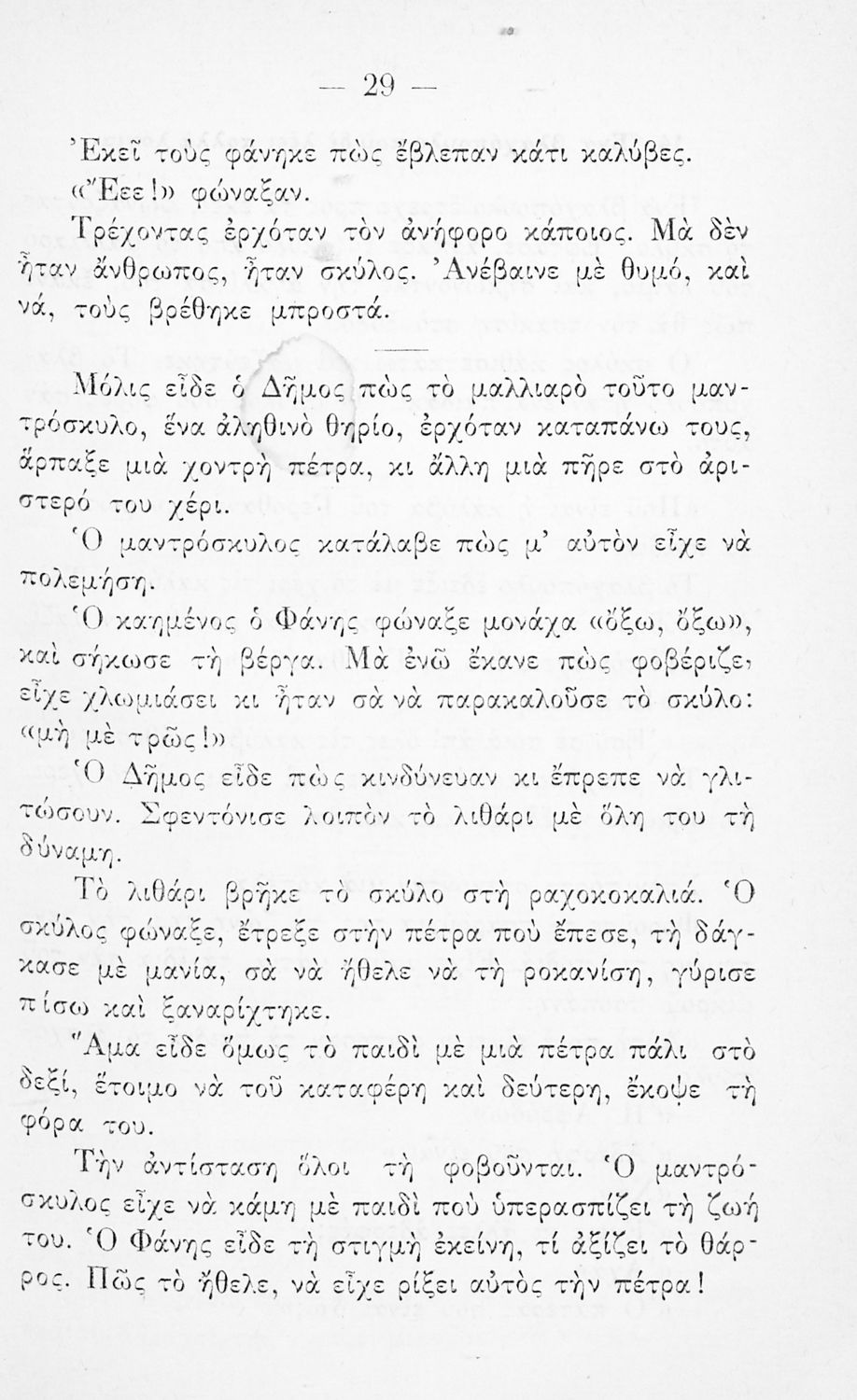 Βαθμίδα εκπαίδευσης: Πρωτοβάθμια Τάξη: Γ' Δημοτικού Μάθημα: Νέα Ελληνικά Γλώσσα: Δημοτική Παρουσίαση περιεχομένου: Αναγνωστικό για την Γ΄ Δημοτικού. Περιλαμβάνει μια αφηγηματική ιστορία, η οποία εμπεριέχει ηθικά διδάγματα για την ηθικοπλαστική καλλιέργεια των μαθητών. Η γλώσσα είναι δημοτική και το ύφος απλό. Στο παράρτημα περιλαμβάνει ποιήματα και τραγούδια. |