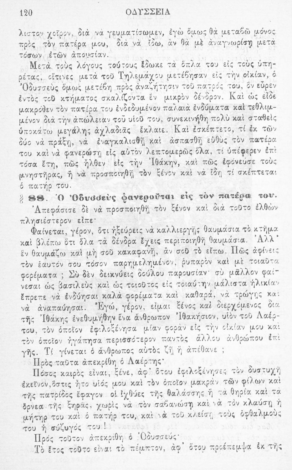 Κωδικός αναγνώρισης: 03-20561307 Τίτλος: Οδύσσεια μετά παραρτήματος ποιημάτων. Προς χρήσιν των Δημοτικών Σχολείων αμφότερων φύλων Συγγραφέας: Π. Π Οικονόμος Μέγεθος και υπόστρωμα: Μαθητικό βοήθημα, σκληρό εξώφυλλο, 145 σελίδες. Σκίτσα, εικόνες (ασπρόμαυρα). |
