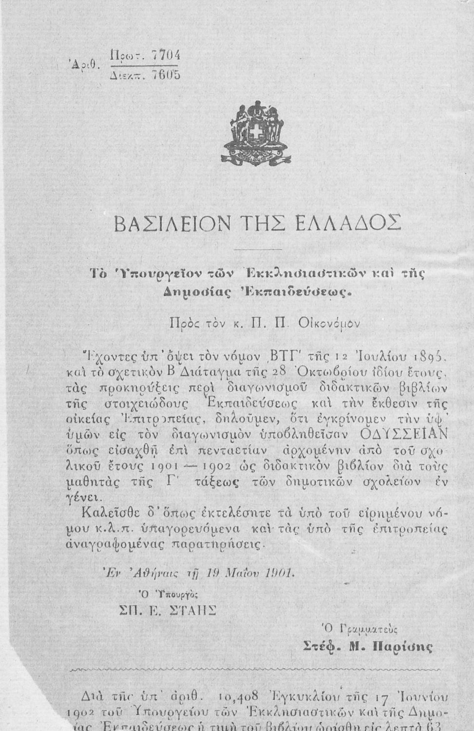 Έτος έκδοσης: 1903 Τόπος έκδοσης: Αθήνα Υπουργική απόφαση / Σύμβαση: 7704/19-5-1901 Έτος έγκρισης: 1901 |