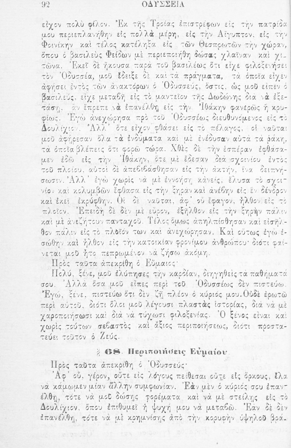 Κωδικός αναγνώρισης: 03-20561307 Τίτλος: Οδύσσεια μετά παραρτήματος ποιημάτων. Προς χρήσιν των Δημοτικών Σχολείων αμφότερων φύλων Συγγραφέας: Π. Π Οικονόμος Μέγεθος και υπόστρωμα: Μαθητικό βοήθημα, σκληρό εξώφυλλο, 145 σελίδες. Σκίτσα, εικόνες (ασπρόμαυρα). |