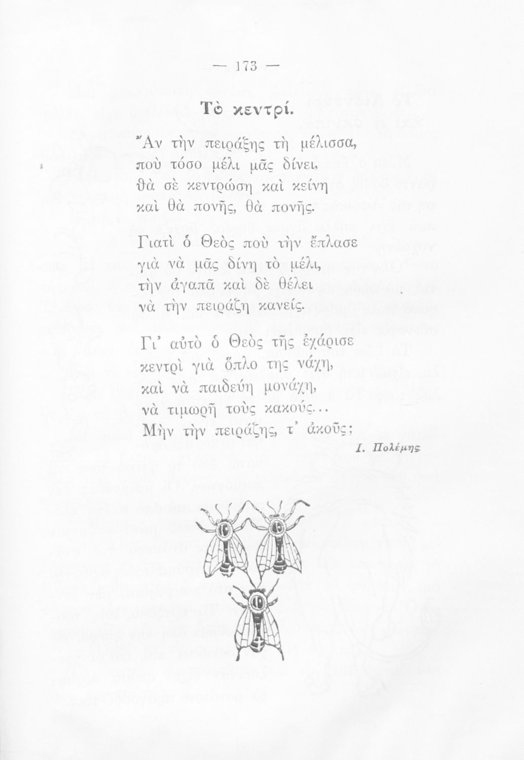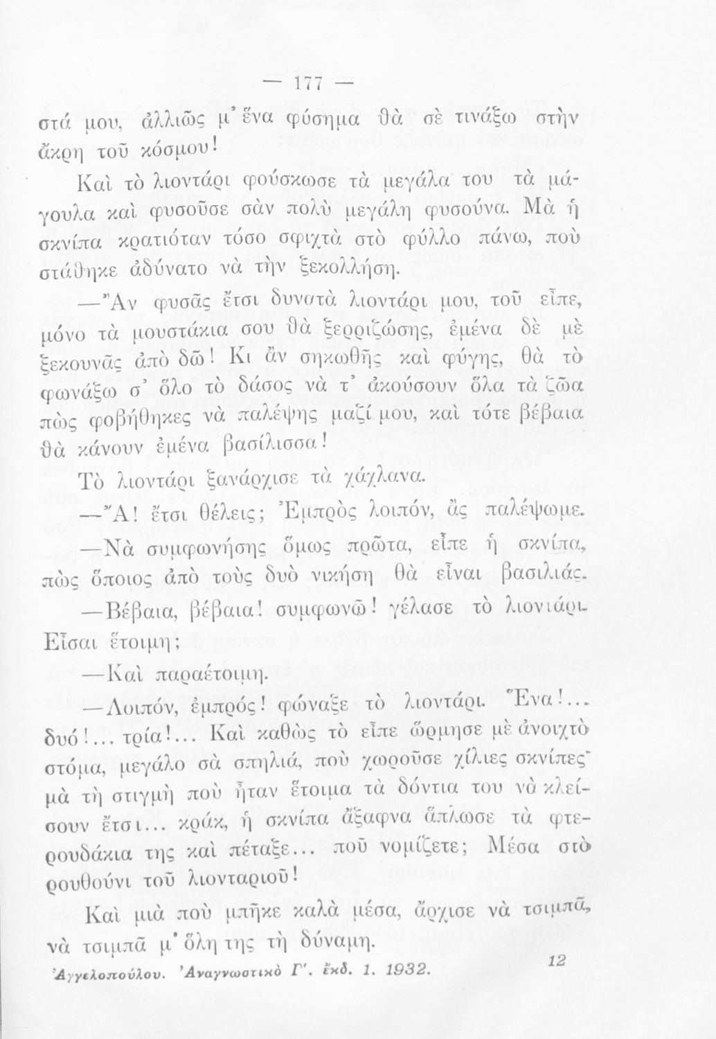 Αναγνωστικό της Γ΄ Δημοτικού που περιλαμβάνει μικρές ιστορίες εθνικιστικού περιεχομένου εμπνευσμένες από την ύπαιθρο, την οικογενειακή και κοινωνική ζωή αλλά και το εθνικό παρελθόν.
