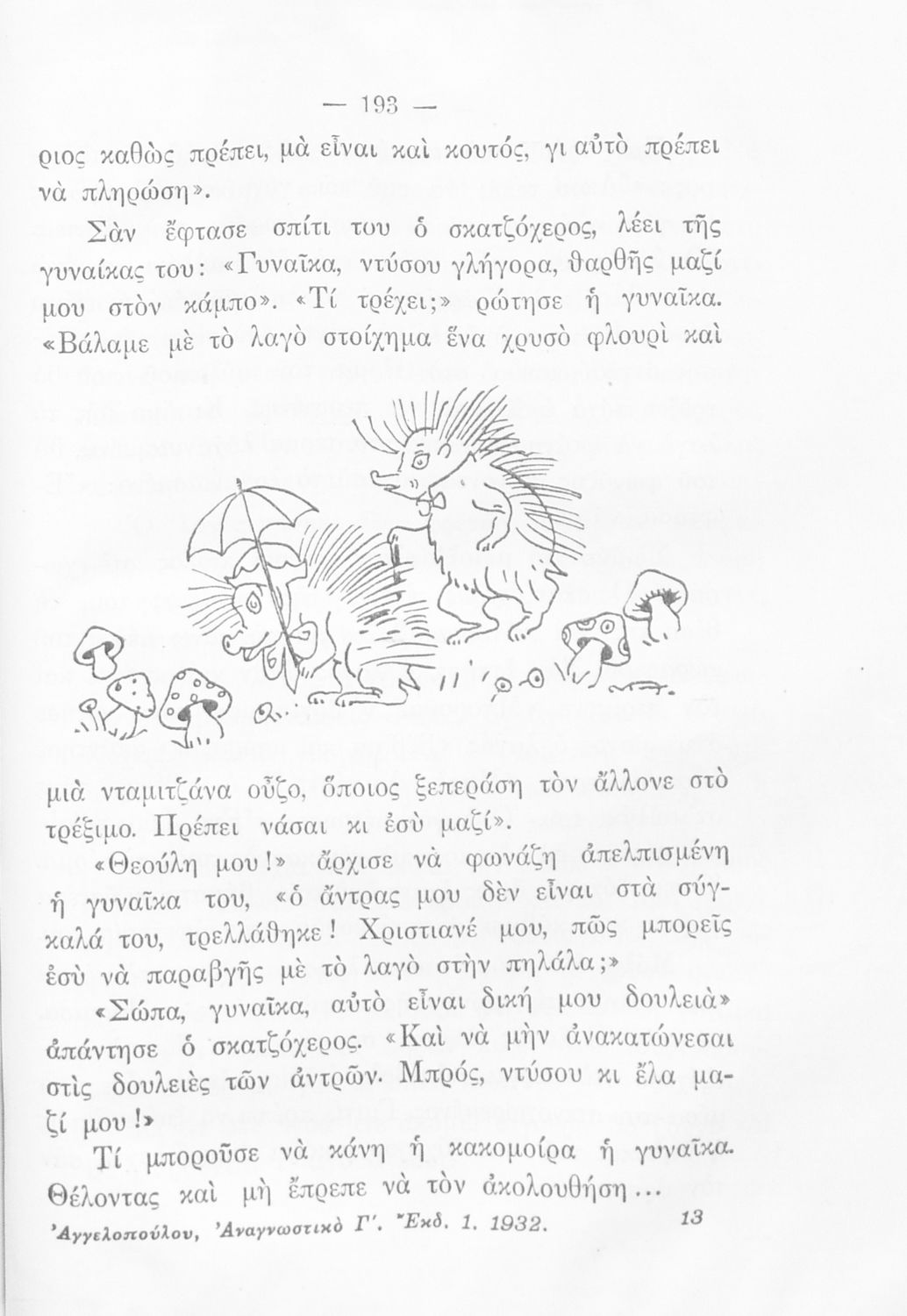Αναγνωστικό της Γ΄ Δημοτικού που περιλαμβάνει μικρές ιστορίες εθνικιστικού περιεχομένου εμπνευσμένες από την ύπαιθρο, την οικογενειακή και κοινωνική ζωή αλλά και το εθνικό παρελθόν.