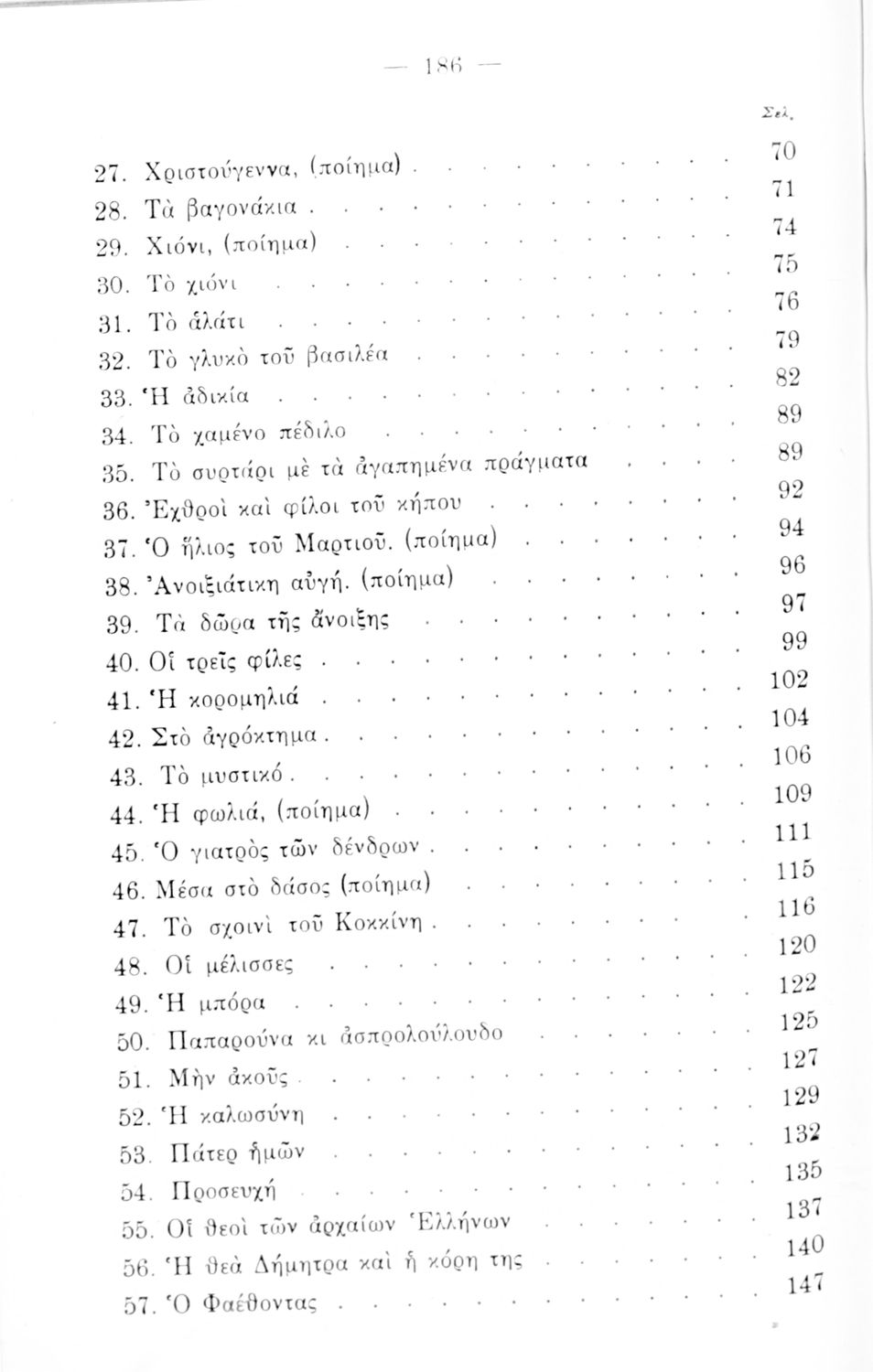 Αναγνωστικό για τους μαθητές της Γ΄ Δημοτικού που περιλαμβάνει ποιήματα και πεζά με θέματα από την καθημερινή ζωή των Ελλήνων και την μυθολογία τους.