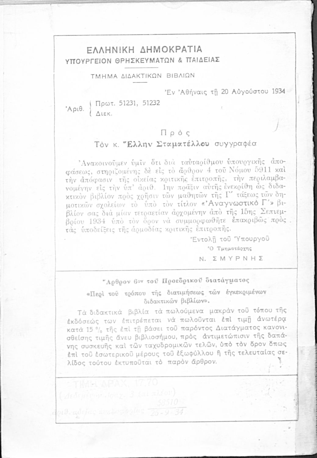 Υπουργική απόφαση / Σύμβαση: 51231/51232/20-8-1934