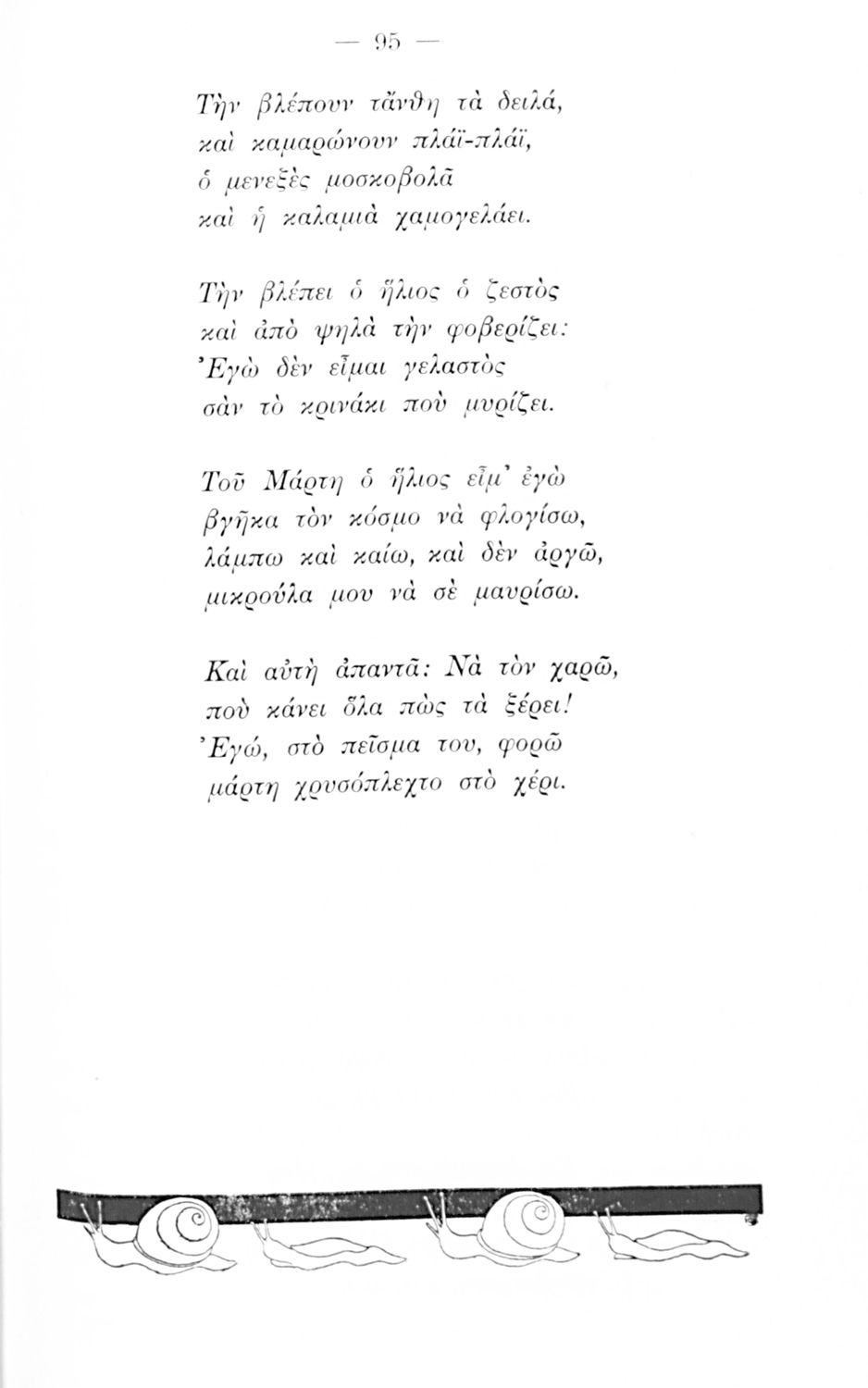 Αναγνωστικό για τους μαθητές της Γ΄ Δημοτικού που περιλαμβάνει ποιήματα και πεζά με θέματα από την καθημερινή ζωή των Ελλήνων και την μυθολογία τους.