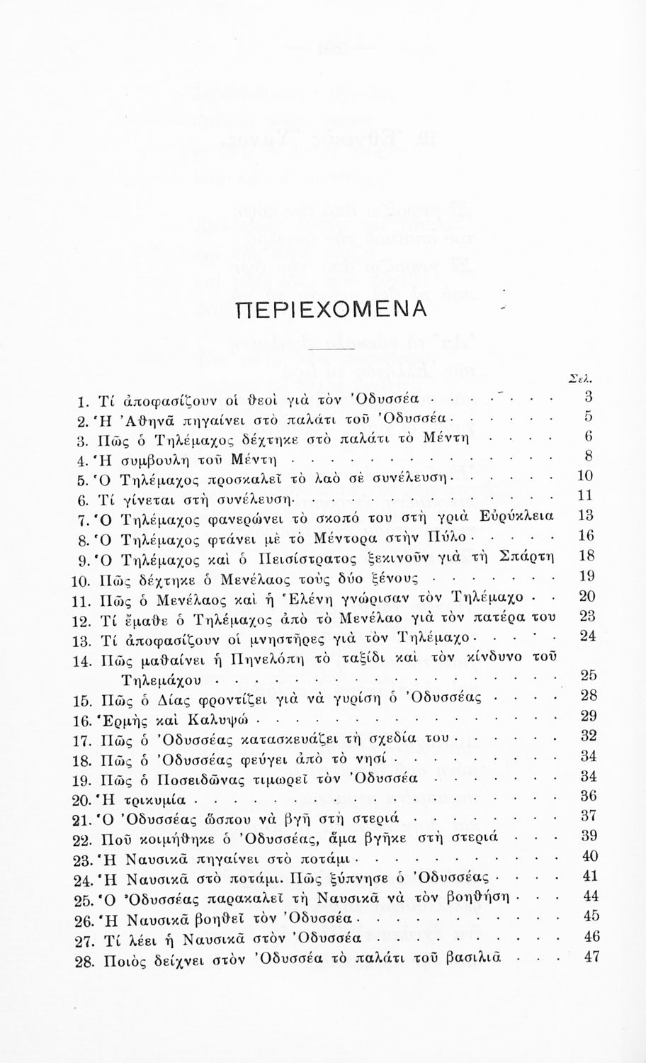 Αναγνωστικό Γ' Δημοτικού που εξιστορεί τις περιπέτειες του Οδυσσέα. Περιέχει παράρτημα με ποιήματα εμπνευσμένα από τον εθνικό, θρησκευτικό και κοινωνικό βίο, τα επαγγέλματα και τις καθημερινές ασχολίες, την αγάπη για την φύση και το περιβάλλον.