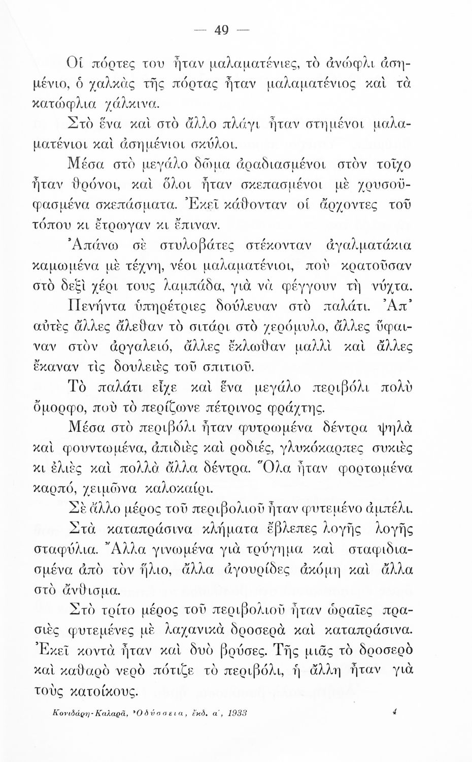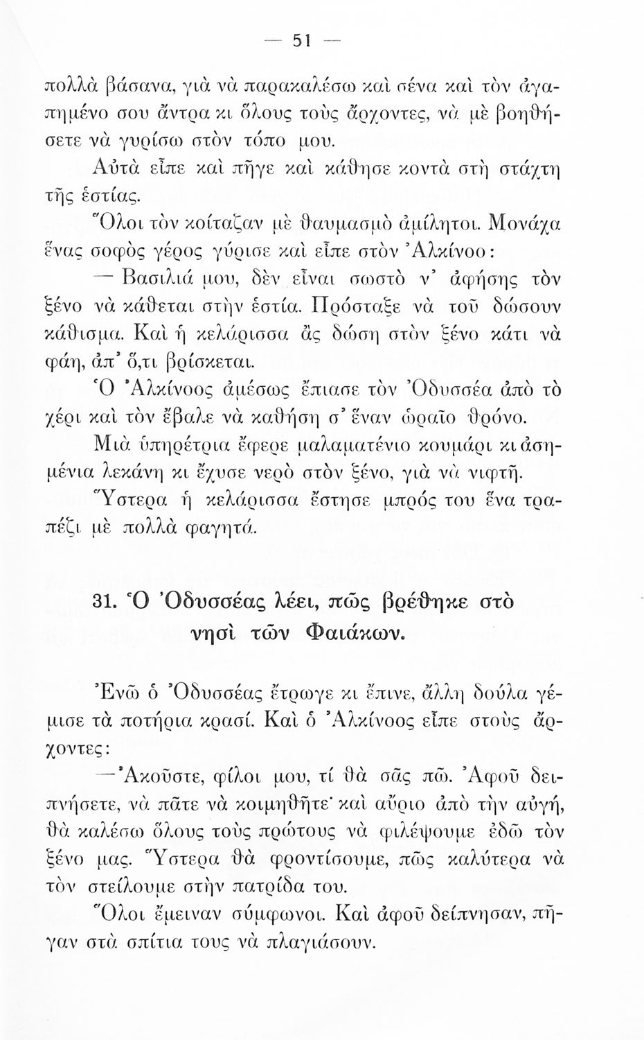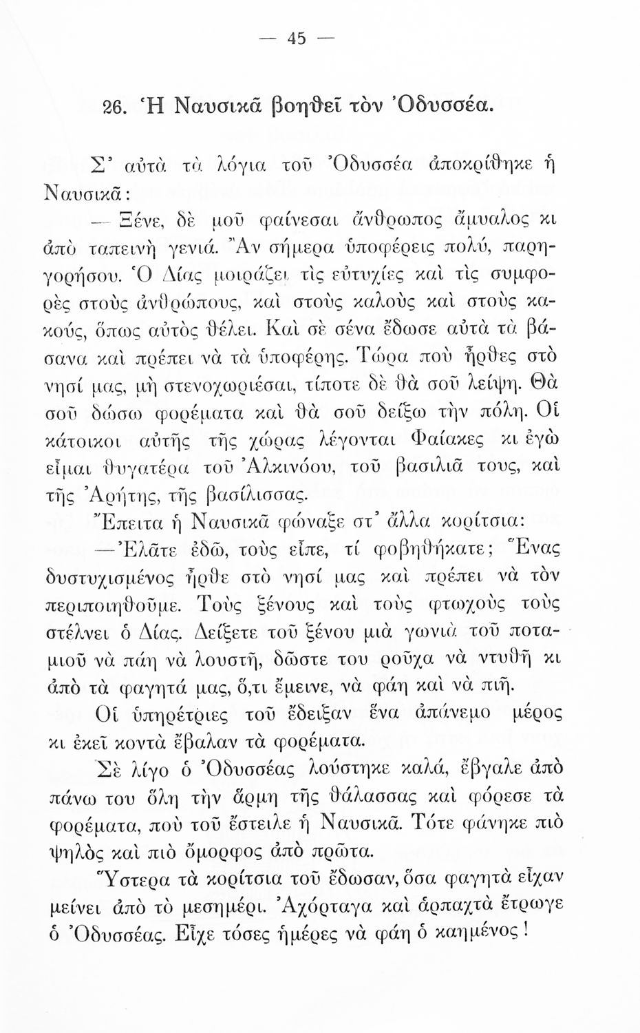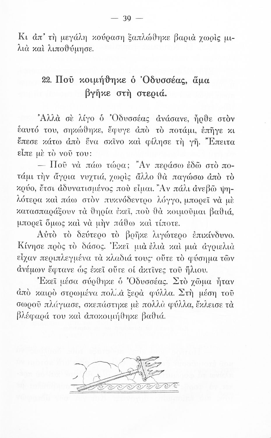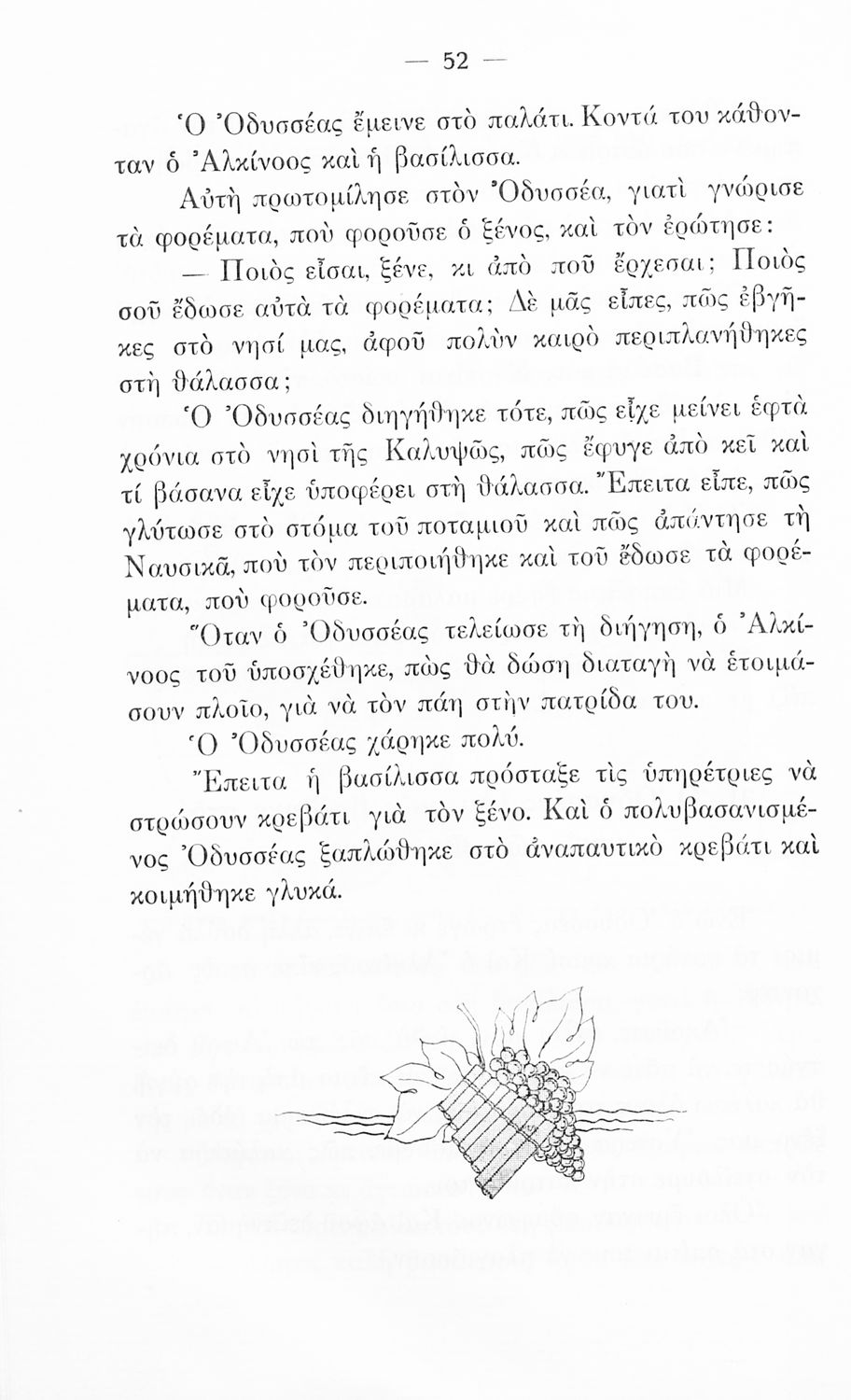 Αναγνωστικό Γ' Δημοτικού που εξιστορεί τις περιπέτειες του Οδυσσέα. Περιέχει παράρτημα με ποιήματα εμπνευσμένα από τον εθνικό, θρησκευτικό και κοινωνικό βίο, τα επαγγέλματα και τις καθημερινές ασχολίες, την αγάπη για την φύση και το περιβάλλον.
