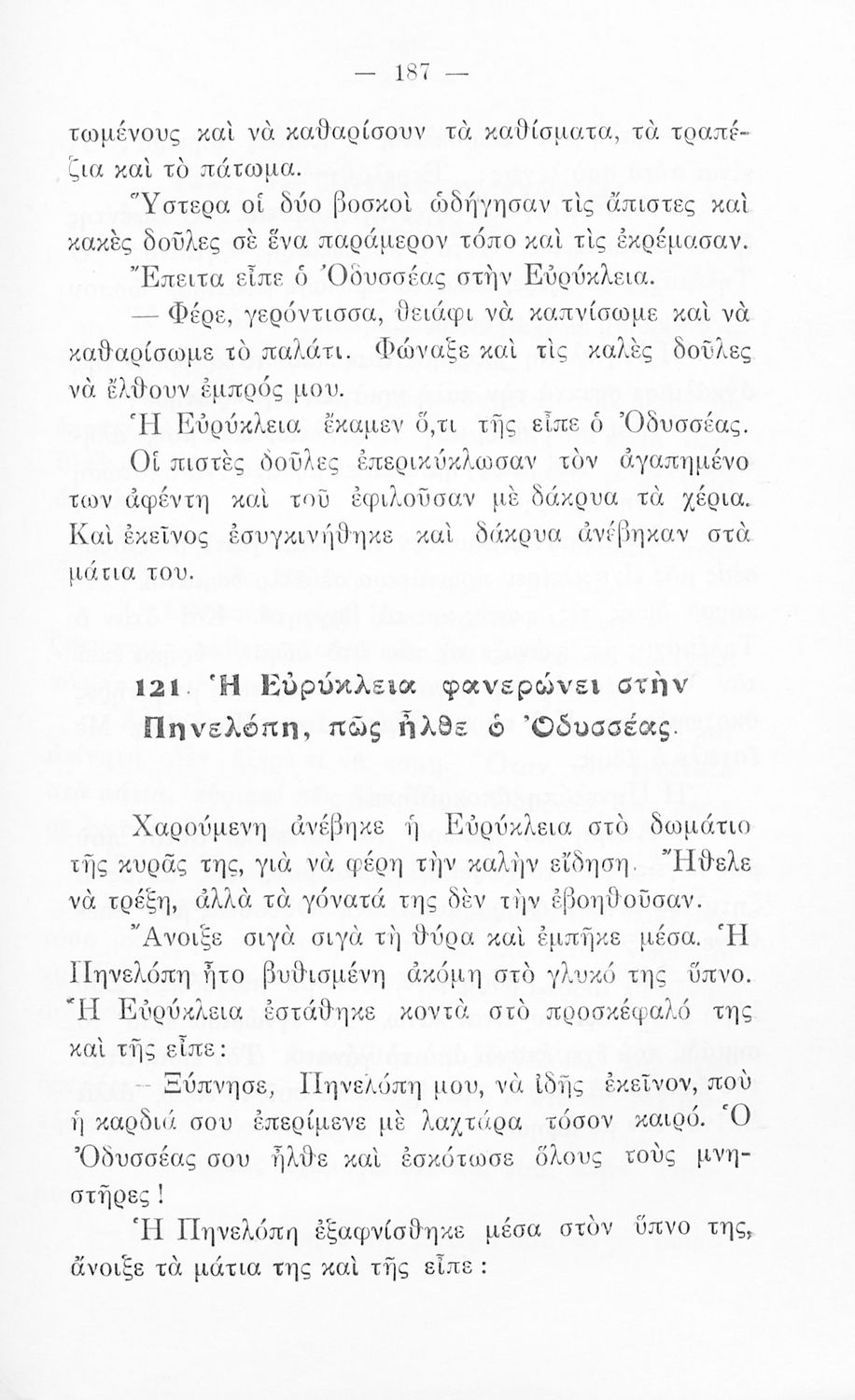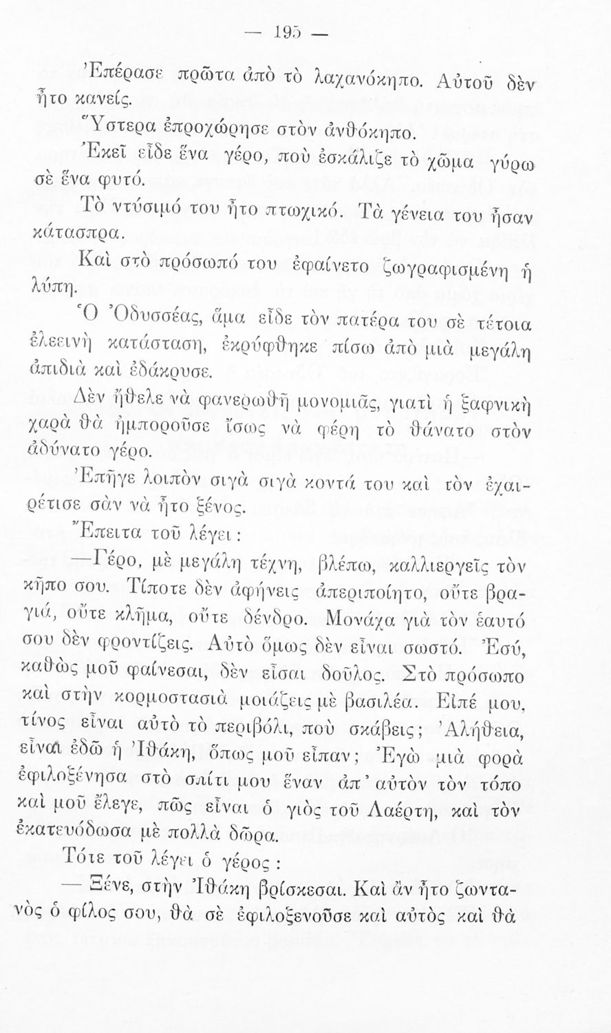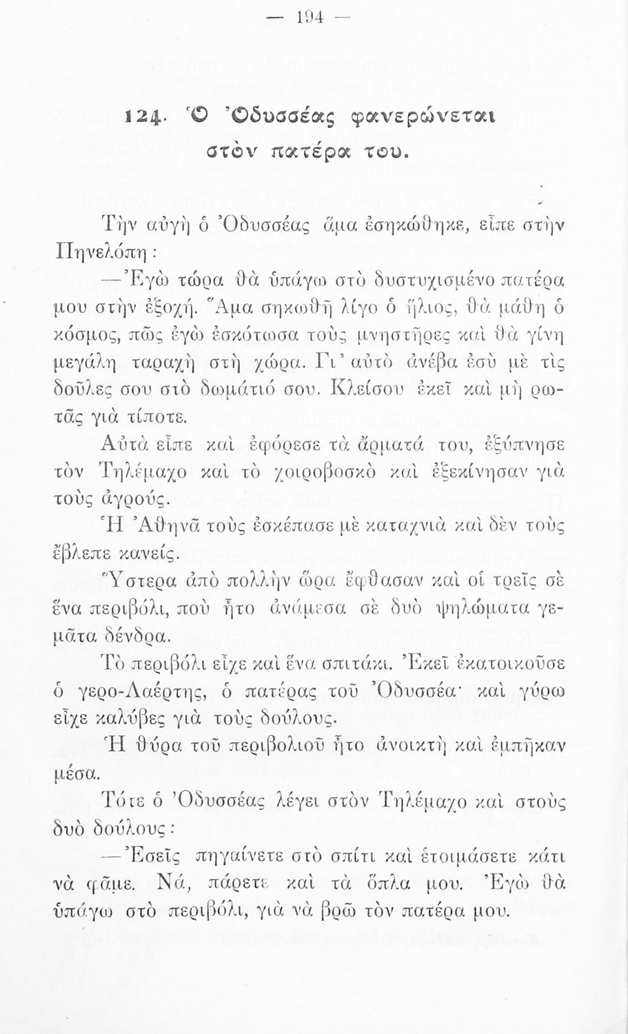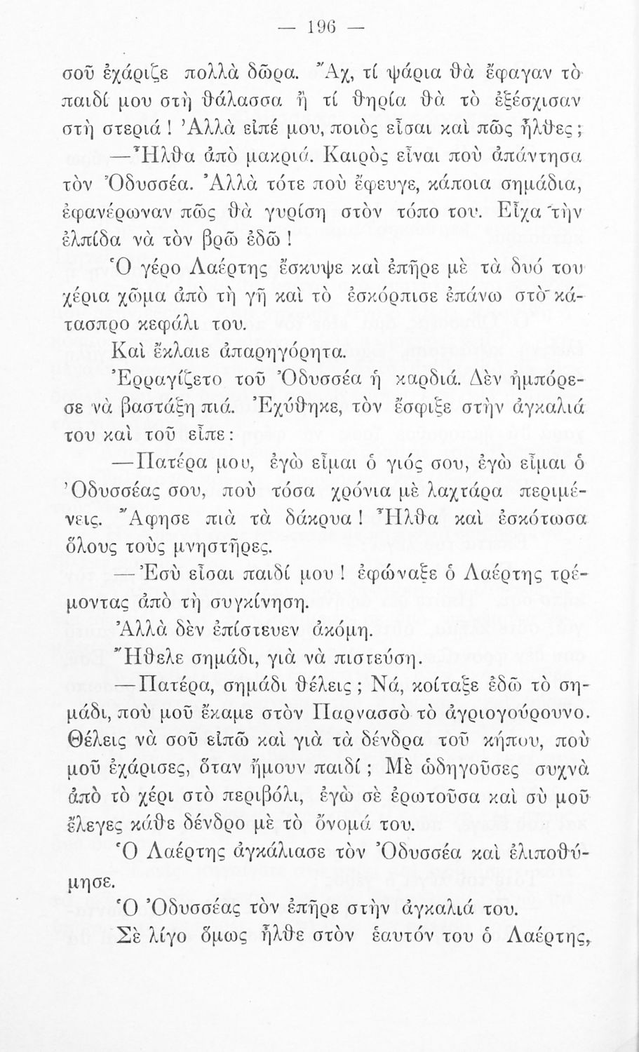 Αναγνωστικό Γ' Δημοτικού που εξιστορεί τις περιπέτειες του Οδυσσέα. Περιέχει παράρτημα με ποιήματα εμπνευσμένα από τον εθνικό, θρησκευτικό και κοινωνικό βίο, τα επαγγέλματα και τις καθημερινές ασχολίες, την αγάπη για την φύση και το περιβάλλον.