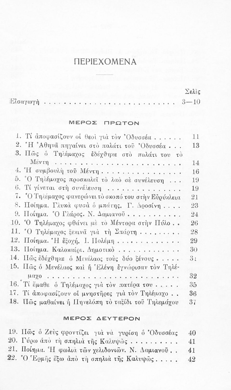 Αναγνωστικό Γ' Δημοτικού που εξιστορεί τις περιπέτειες του Οδυσσέα. Περιέχει παράρτημα με ποιήματα εμπνευσμένα από τον εθνικό, θρησκευτικό και κοινωνικό βίο, τα επαγγέλματα και τις καθημερινές ασχολίες, την αγάπη για την φύση και το περιβάλλον.