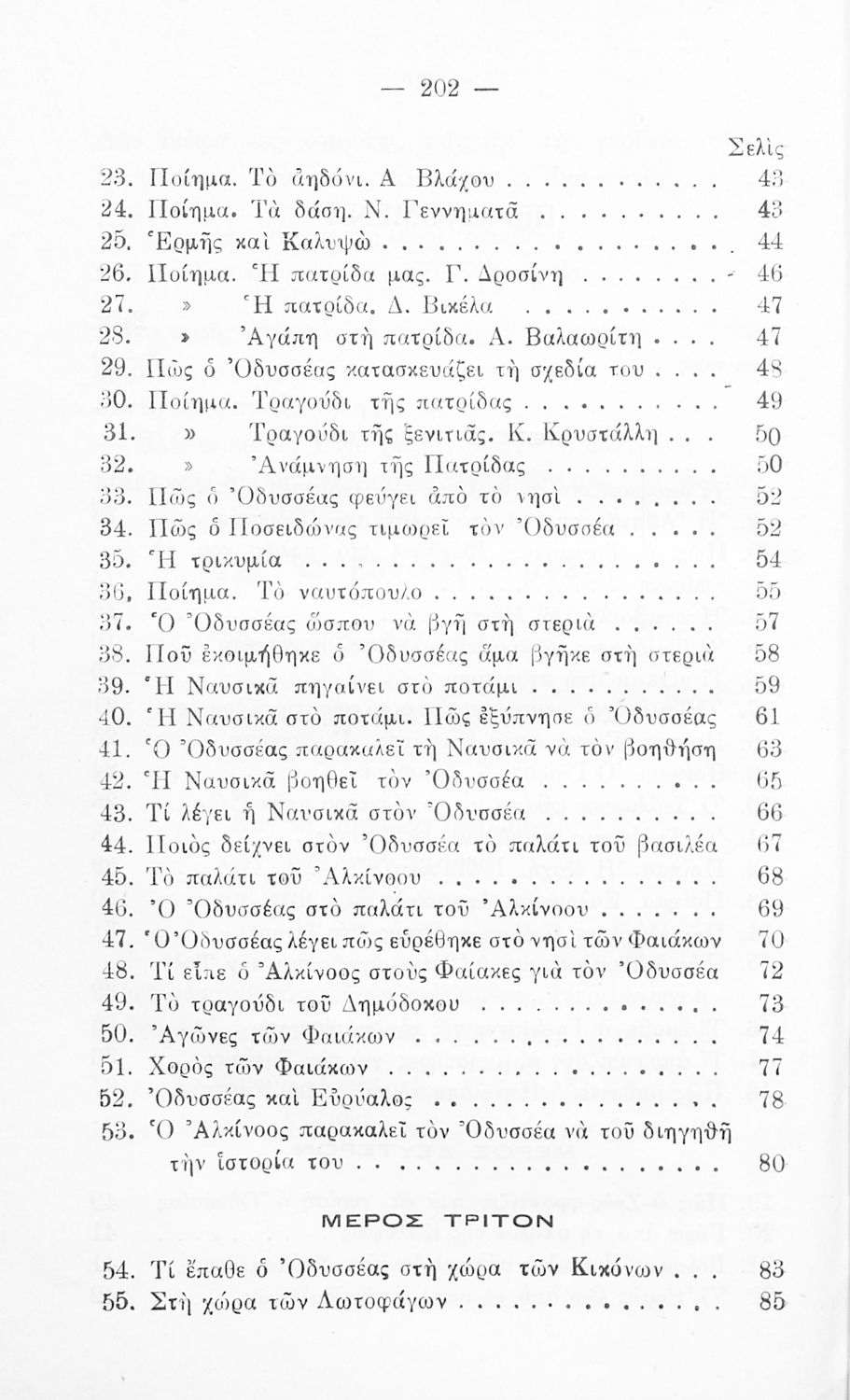 Αναγνωστικό Γ ' Δημοτικού το οποίο παρουσιάζει το ταξίδι του Οδυσσέα προς την Ιθάκη. Στο τέλος το βιβλίο περιλαμβάνει σειρά από δημοτικά ποιήματα τα οποία εκπέμπουν μηνύματα γυρισμού και ξενιτιάς.