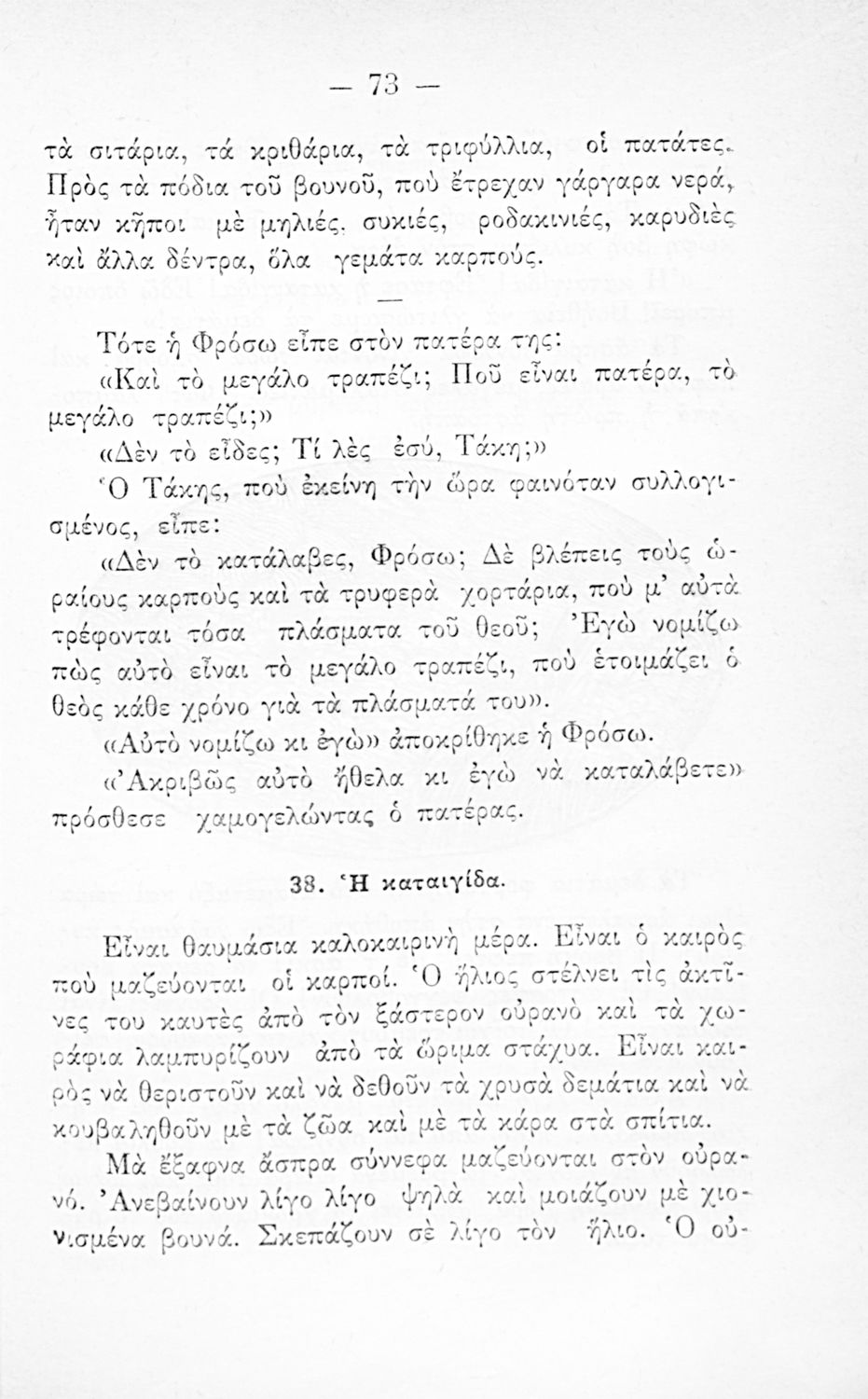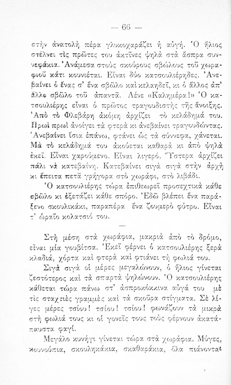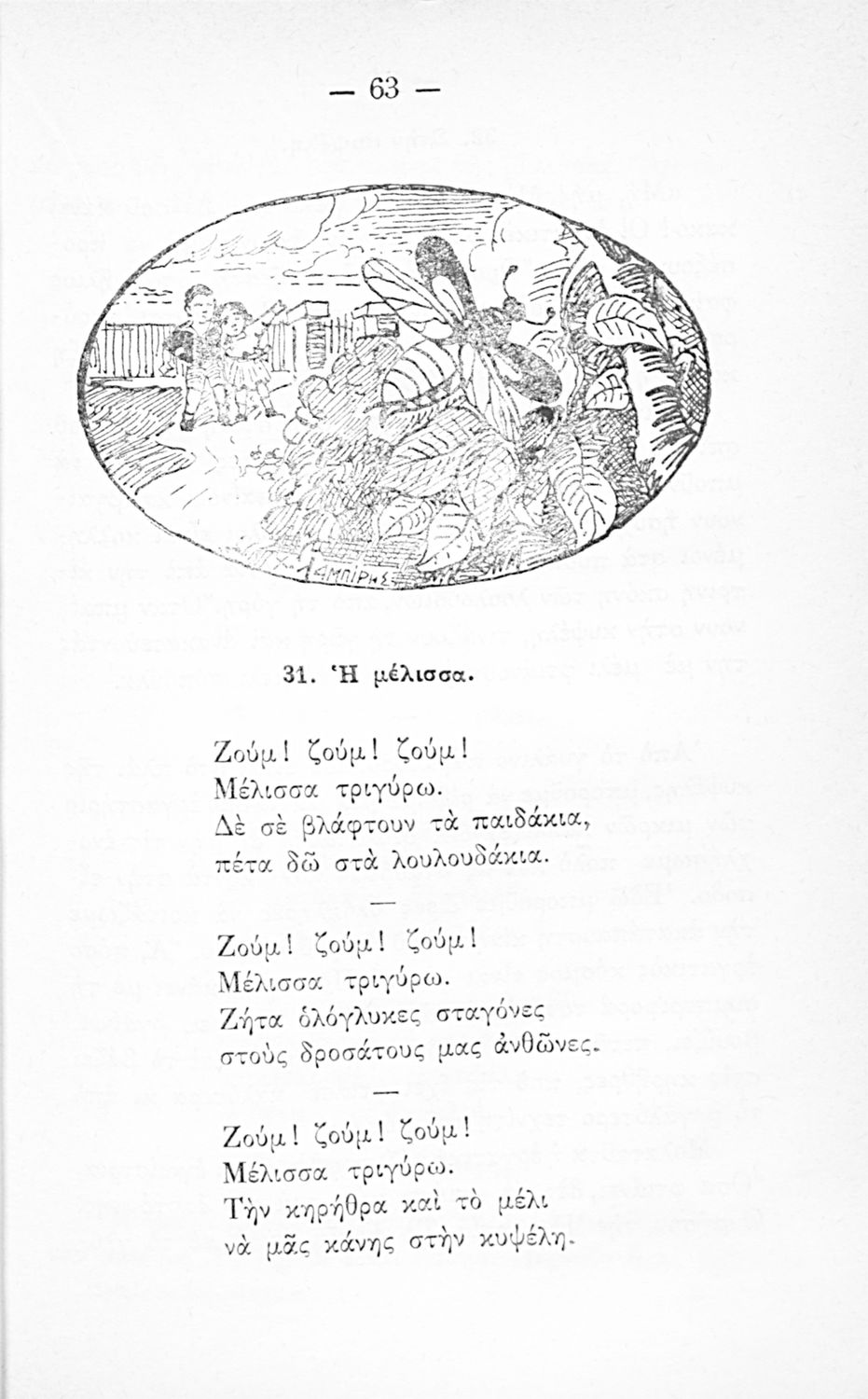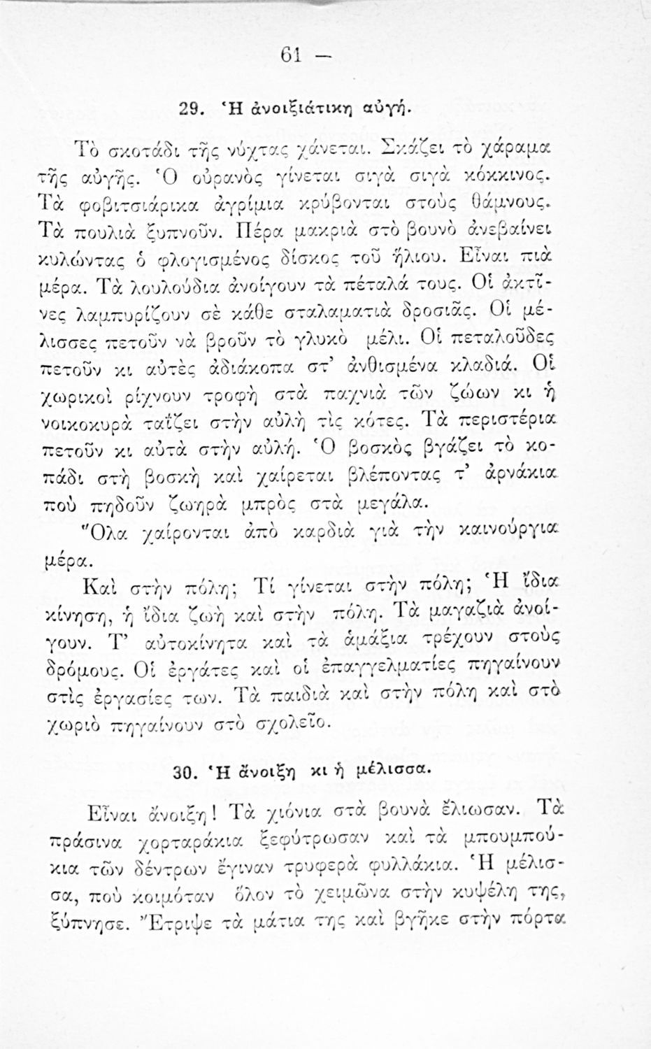 Αναγνωστικό για τους μαθητές της Γ΄ Δημοτικού που περιλαμβάνει ποιήματα και πεζά με θέματα από την καθημερινή ζωή των Ελλήνων και την μυθολογία τους. Περιέχει και "μεθοδικές οδηγίες για το δάσκαλο".