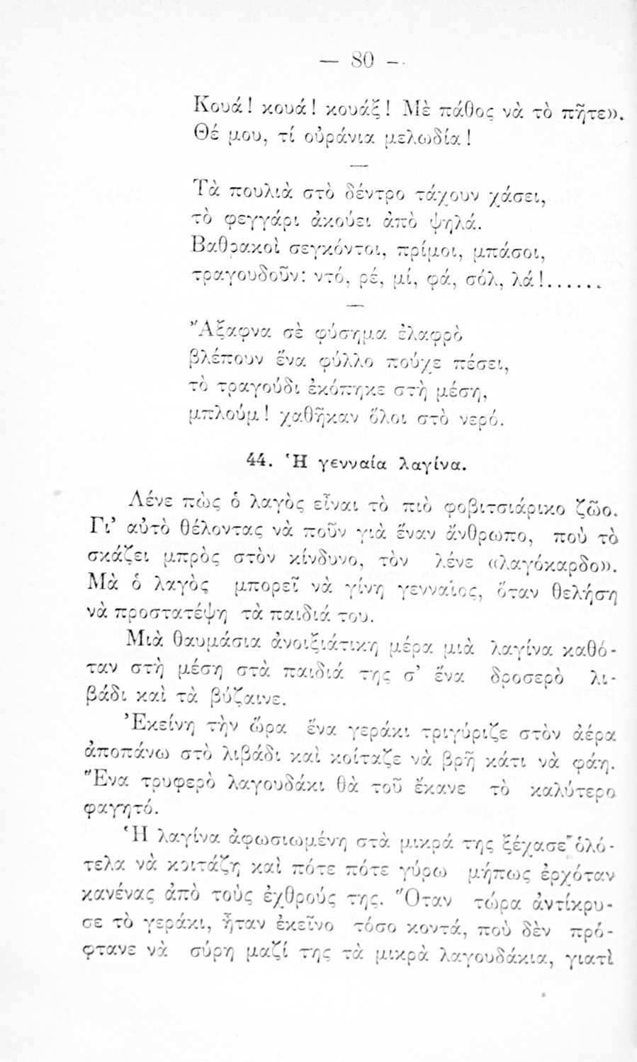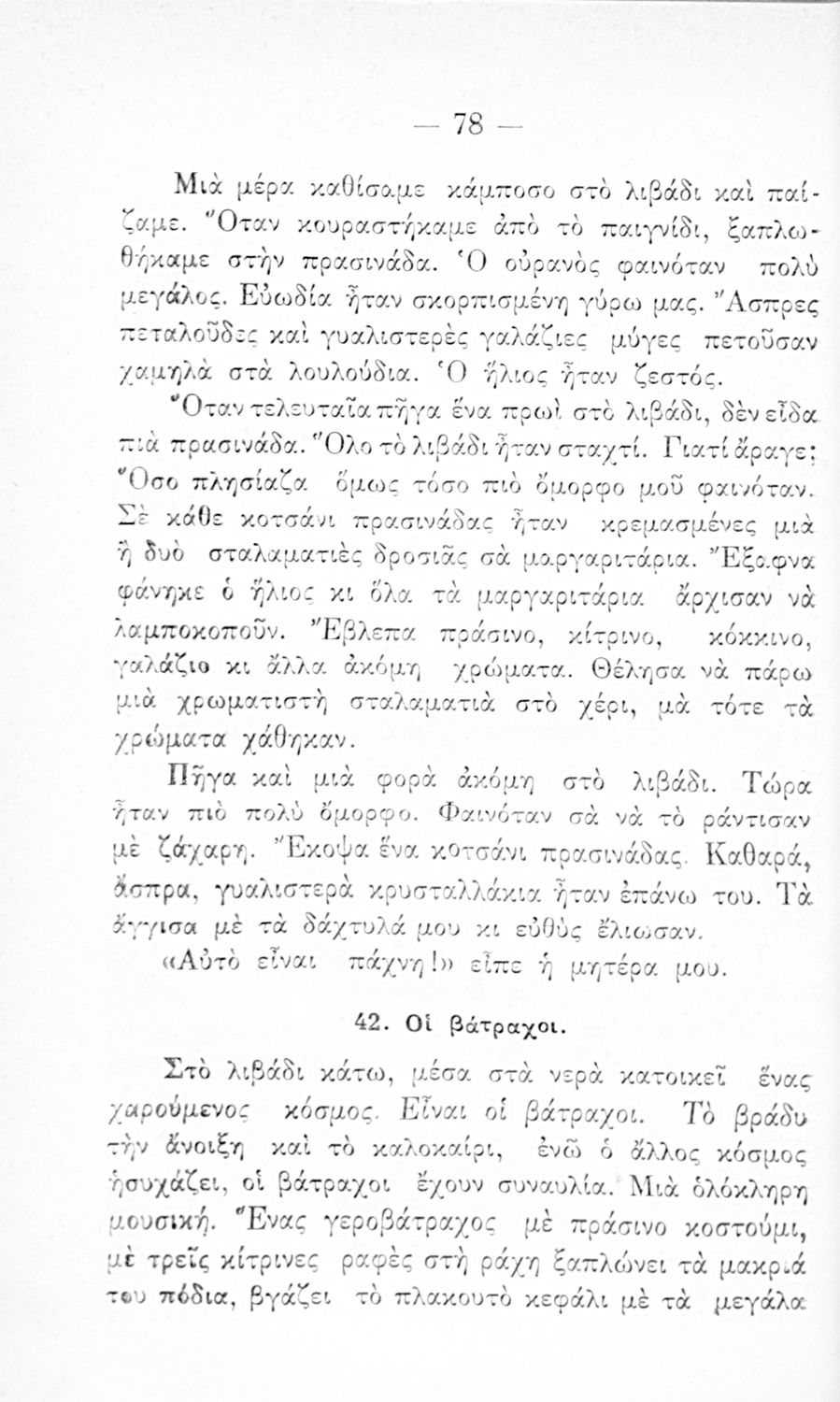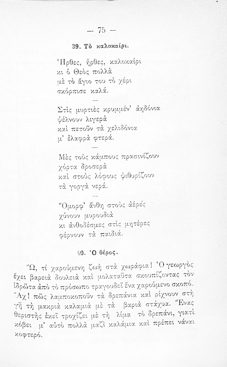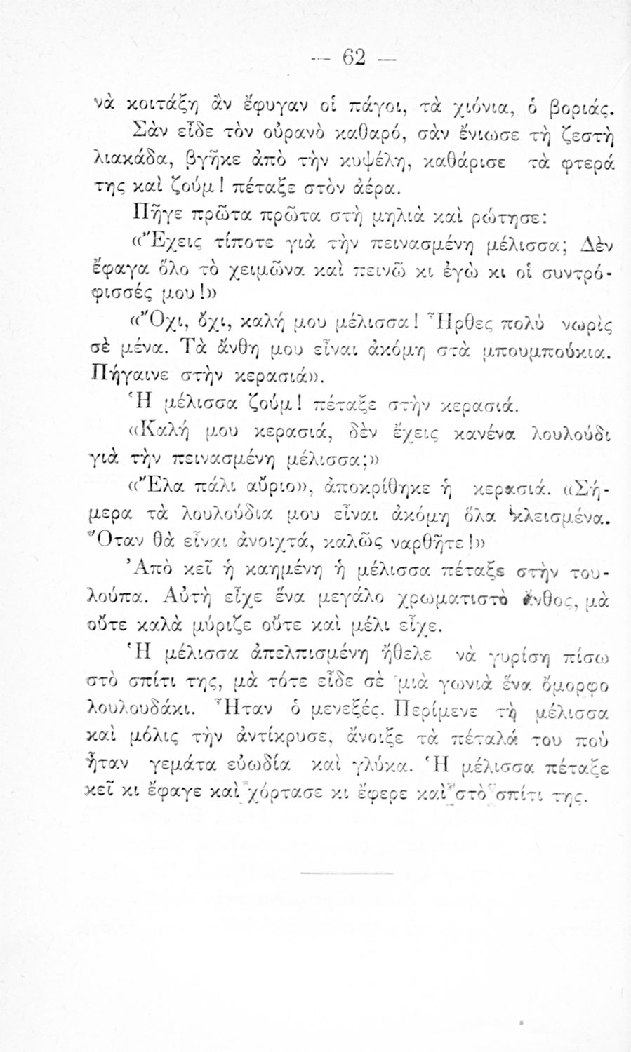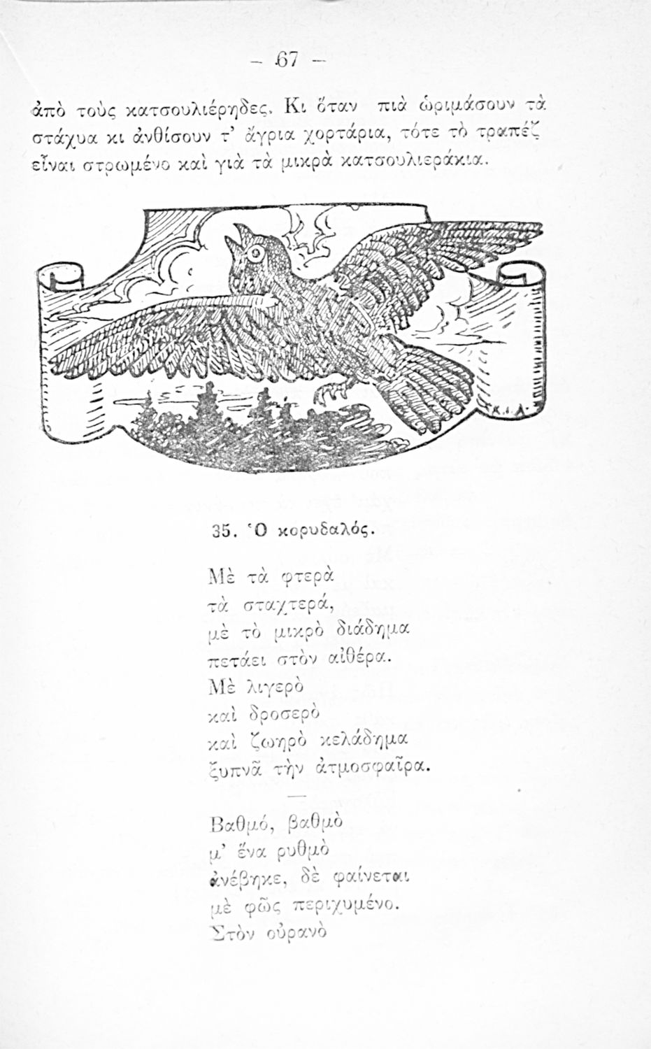 Αναγνωστικό για τους μαθητές της Γ΄ Δημοτικού που περιλαμβάνει ποιήματα και πεζά με θέματα από την καθημερινή ζωή των Ελλήνων και την μυθολογία τους. Περιέχει και "μεθοδικές οδηγίες για το δάσκαλο".