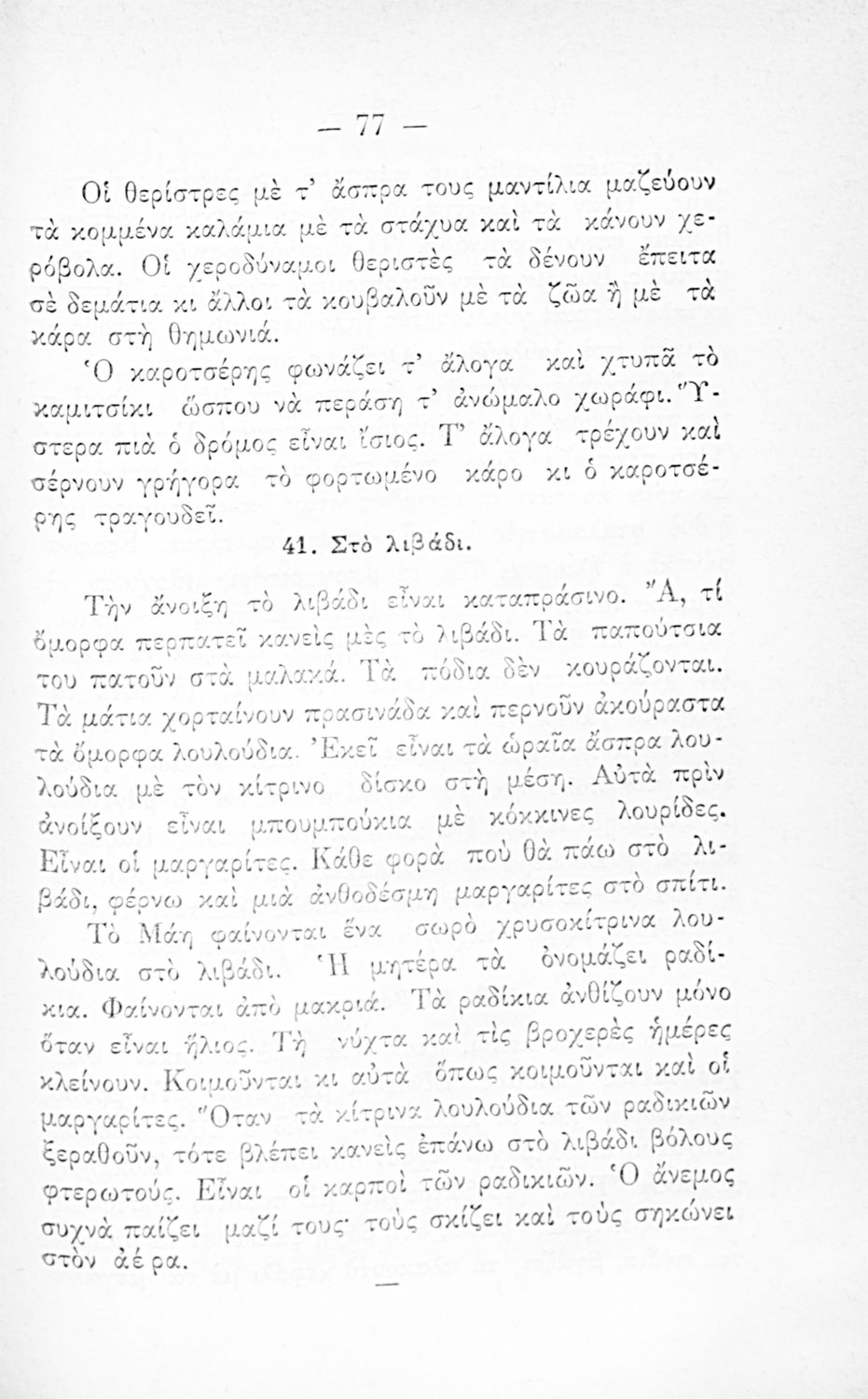 Αναγνωστικό Γ' Δημοτικού που είναι χωρισμένο σύμφωνα με τις εποχές του χρόνου και περιλαμβάνει ποιήματα και πεζά εμπνευσμένα από τη ζωή στην ύπαιθρο, την εθνική, οικογενειακή και κοινωνική ζωή, τη θρησκευτική ...