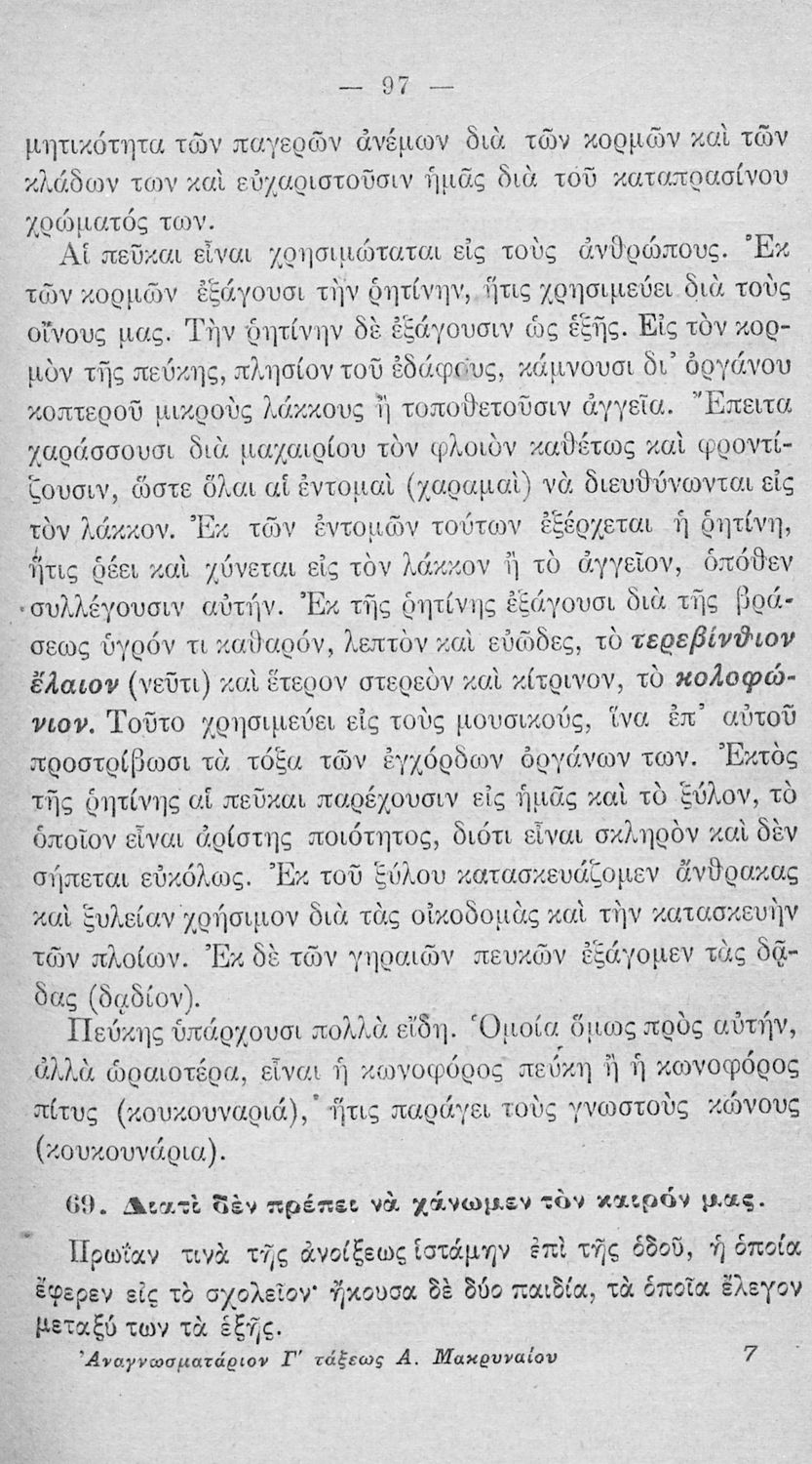 Αναγνωστικό Γ' Δημοτικού που περιέχει πεζά και ποιήματα ηθικοπλαστικού περιεχομένου εμπνευσμένα από τη θρησκευτική, εθνική, κοινωνική και ατομική ζωή, την ελληνική φύση, ιστορία και μυθολογία και την υγιεινή.