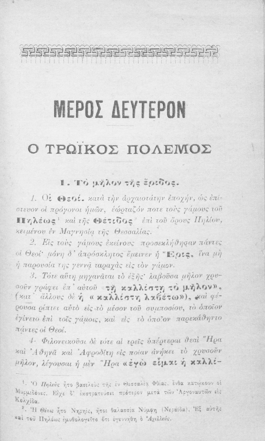 Σχολικό εγχειρίδιο για το μάθημα της Γλώσσας στο Δημοτικό. Πρόκειται για Αναγνωστικό περιέχει δυο μέρη. Στο πρώτο περιλαμβάνονται ποικίλα διηγήματα, ιστορήματα, περιγραφές, παροιμίες, γνωμικά και ποιήματα. Στο δεύτερο αναφέρονται σκηνές από τον Τρωικό πόλεμο. Η γλώσσα είναι απλή καθαρεύουσα. Περιέχει εικόνες, οι οποίες διευκολύνουν τη διδασκαλία και εξυπηρετούν στην εκμάθηση.