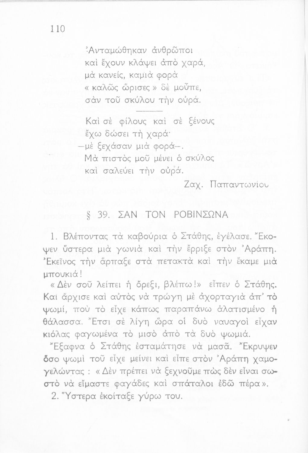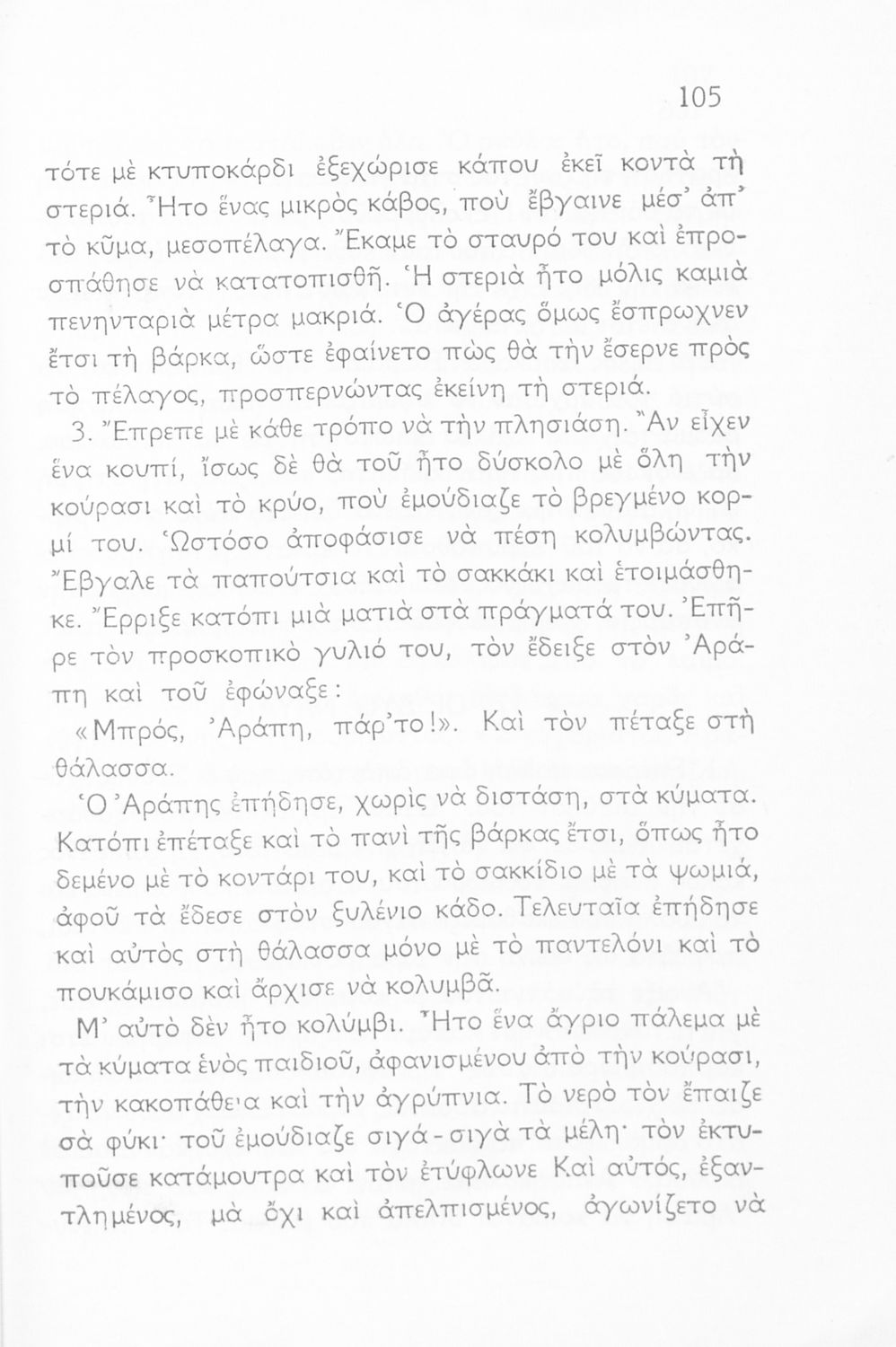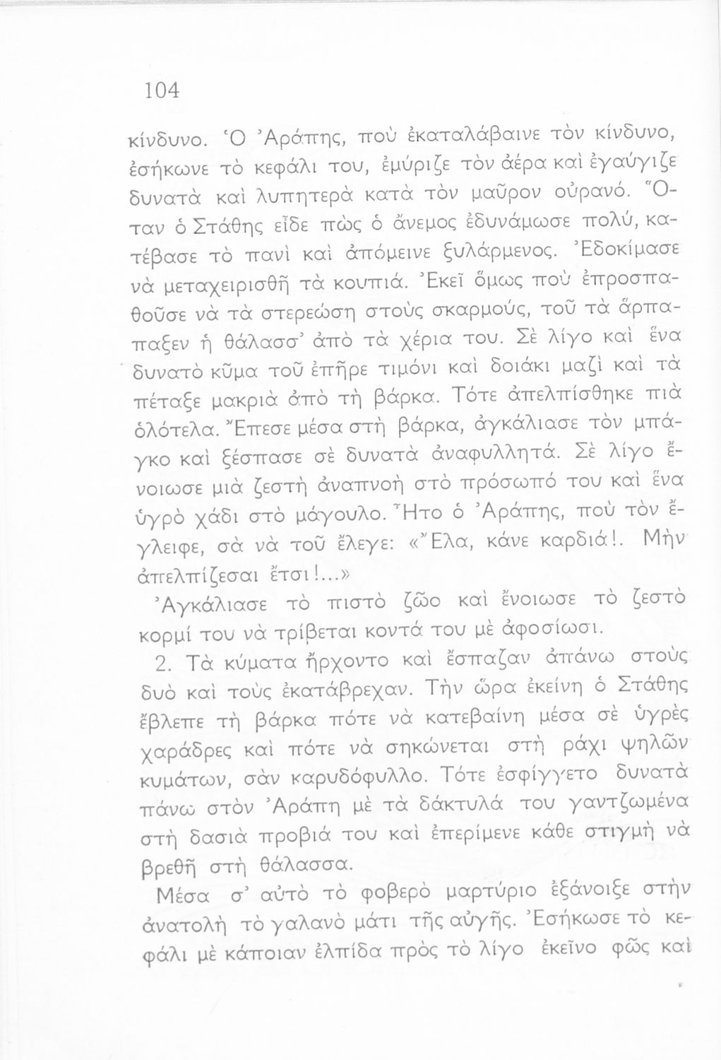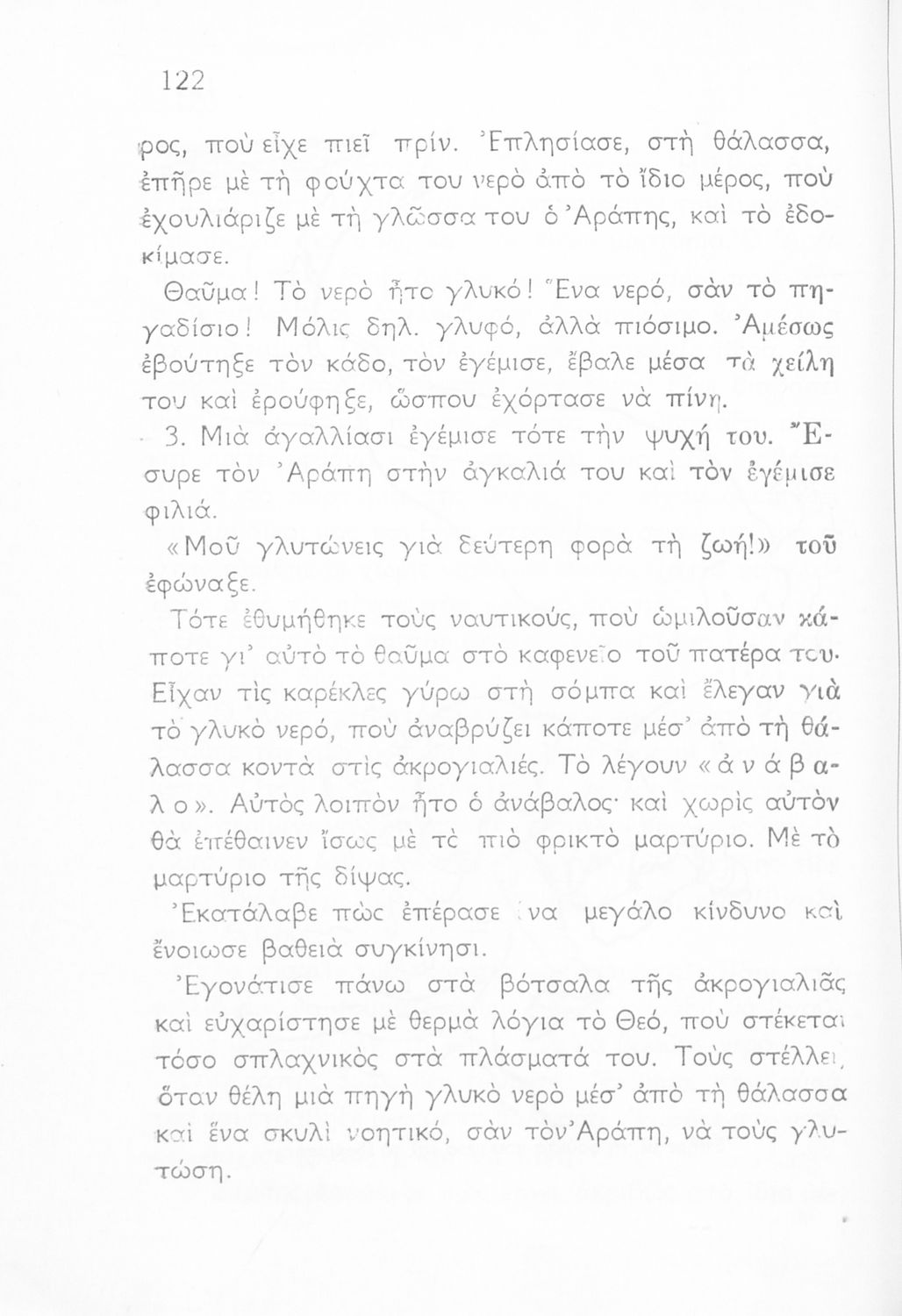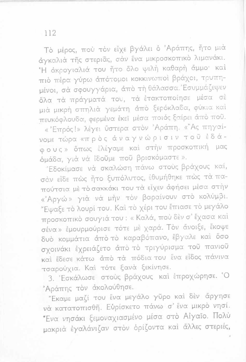 Αναγνωστικό για την Δ΄ τάξη του Δημοτικού. Περιλαμβάνει ένα κείμενο στο οποίο παρεμβάλλονται ποιήματα δημοτικά και Ελλήνων ποιητών.