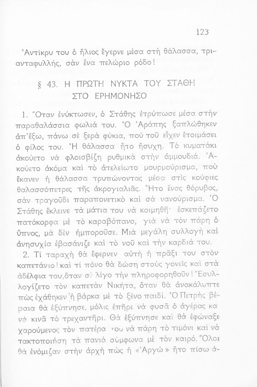 Αναγνωστικό της Δ΄ Τάξης Δημοτικού για το μάθημα της Γλώσσας. Περιλαμβάνει αφηγηματικές ιστορίες από τη ζωή του βασικού ήρωα Στάθη Σταθά. Οι εμπειρίες του ήρωα είναι κυρίως από τη θάλασσα. Περιέχει εικόνες, οι οποίες οπτικοποιούν τα κείμενα και βοηθούν στην διδασκαλία.