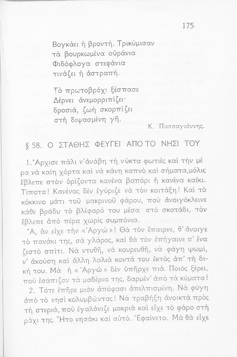 Αναγνωστικό για την Δ΄ τάξη του Δημοτικού. Περιλαμβάνει ένα κείμενο στο οποίο παρεμβάλλονται ποιήματα δημοτικά και Ελλήνων ποιητών.