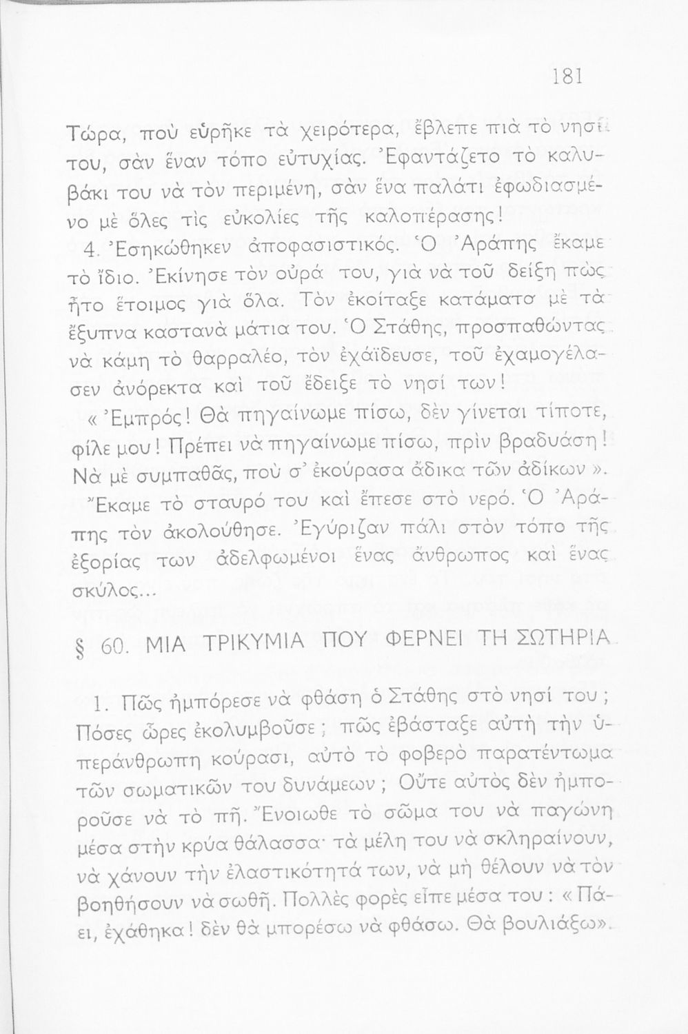Βαθμίδα εκπαίδευσης: Πρωτοβάθμια Τάξη: Δ' Δημοτικού Μάθημα: Νέα Ελληνικά Γλώσσα: Απλή καθαρεύουσα Παρουσίαση περιεχομένου: Αναγνωστικό της Δ΄ Τάξης Δημοτικού για το μάθημα της Γλώσσας. Περιλαμβάνει αφηγηματικές ιστορίες από τη ζωή του βασικού ήρωα Στάθη Σταθά. Οι εμπειρίες του ήρωα είναι κυρίως από τη θάλασσα. Περιέχει εικόνες, οι οποίες οπτικοποιούν τα κείμενα και βοηθούν στην διδασκαλία. |