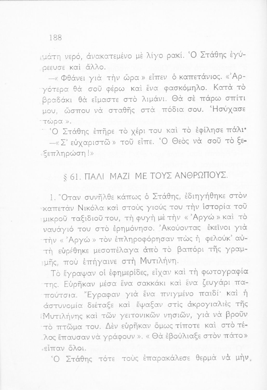 Αναγνωστικό της Δ΄ Τάξης Δημοτικού για το μάθημα της Γλώσσας. Περιλαμβάνει αφηγηματικές ιστορίες από τη ζωή του βασικού ήρωα Στάθη Σταθά. Οι εμπειρίες του ήρωα είναι κυρίως από τη θάλασσα. Περιέχει εικόνες, οι οποίες οπτικοποιούν τα κείμενα και βοηθούν στην διδασκαλία.