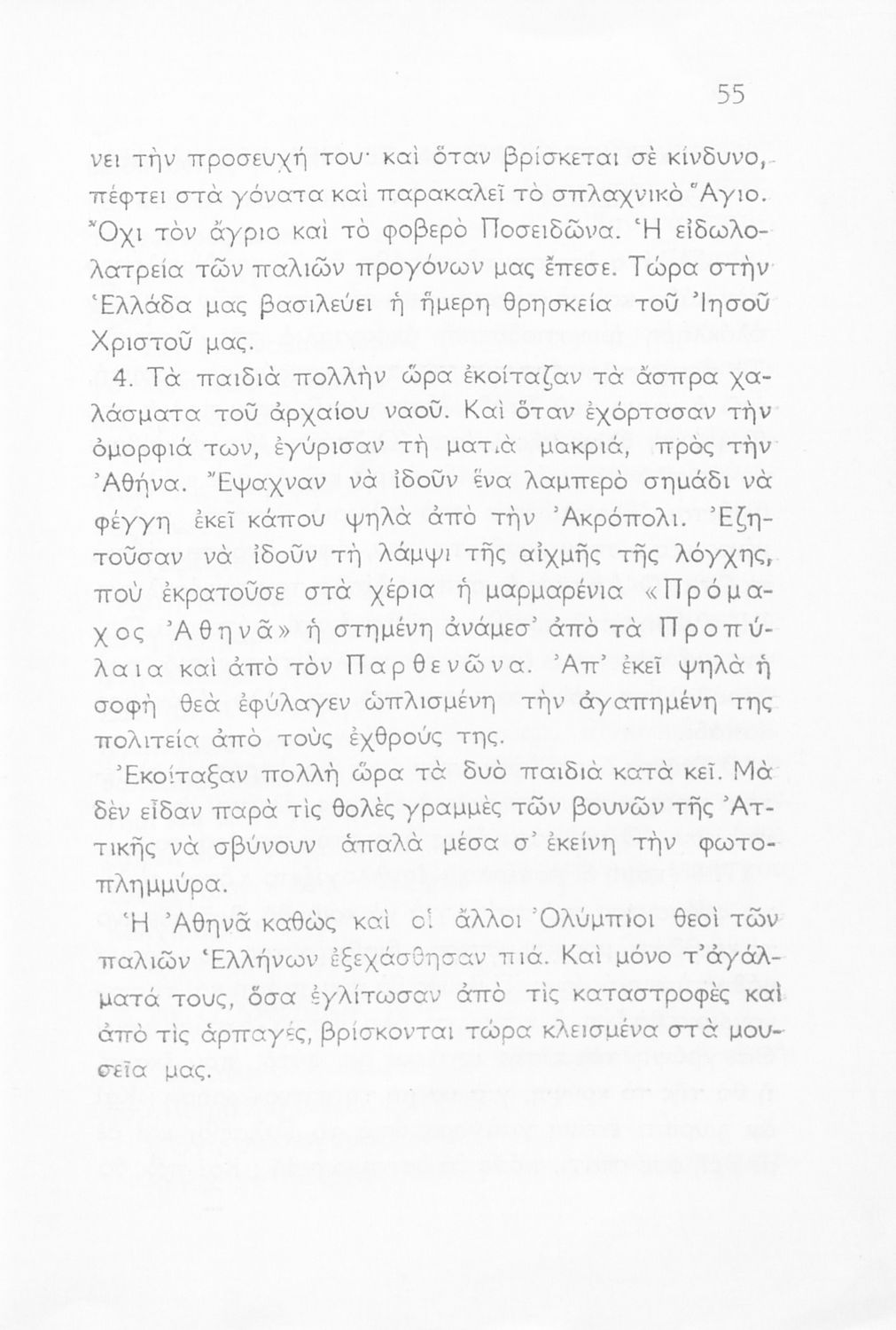 Αναγνωστικό Δ΄ Δημοτικού που περιέχει πεζά και ποιήματα εμπνευσμένα από την ελληνική ιστορία και μυθολογία, την κοινωνική ζωή και την ελληνική φύση.
