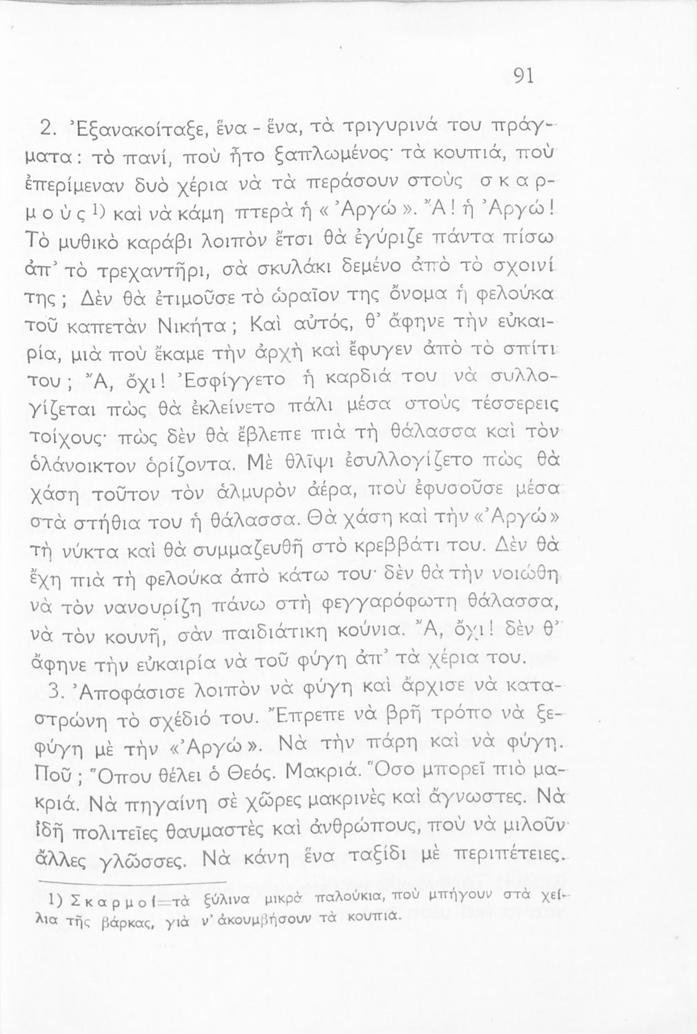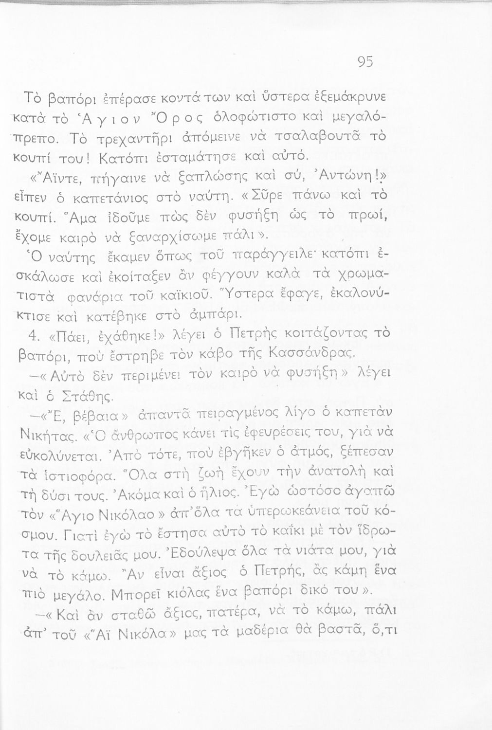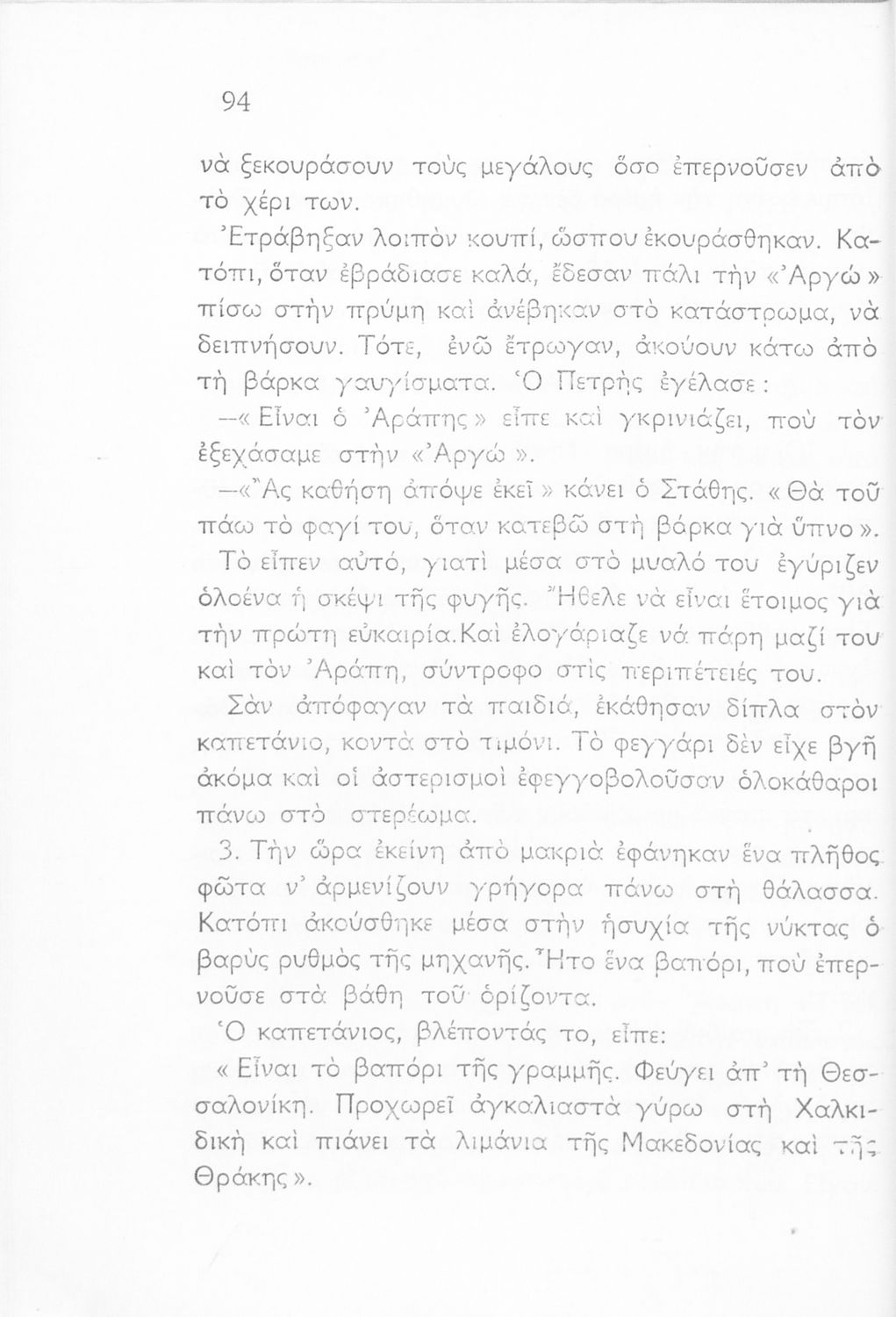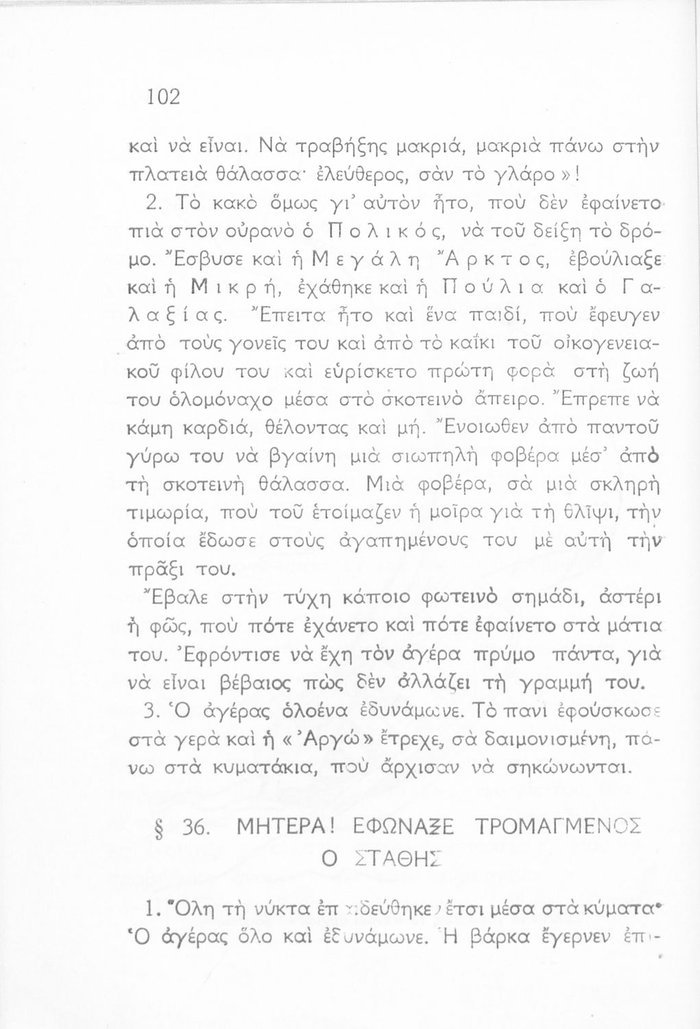 Αναγνωστικό για την Δ΄ τάξη του Δημοτικού. Περιλαμβάνει ένα κείμενο στο οποίο παρεμβάλλονται ποιήματα δημοτικά και Ελλήνων ποιητών.