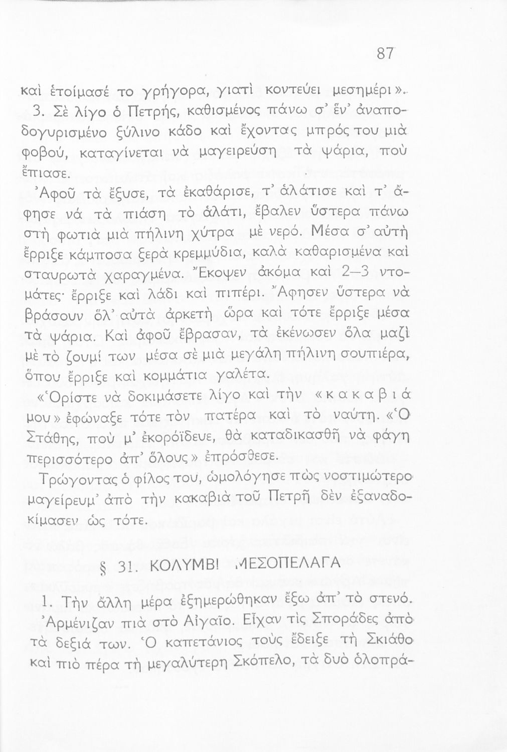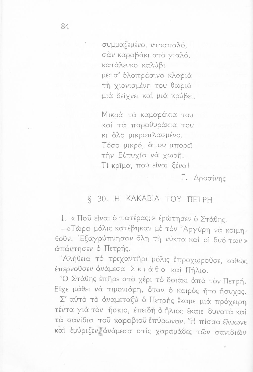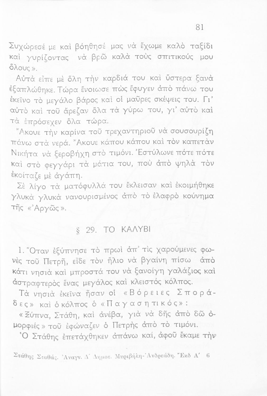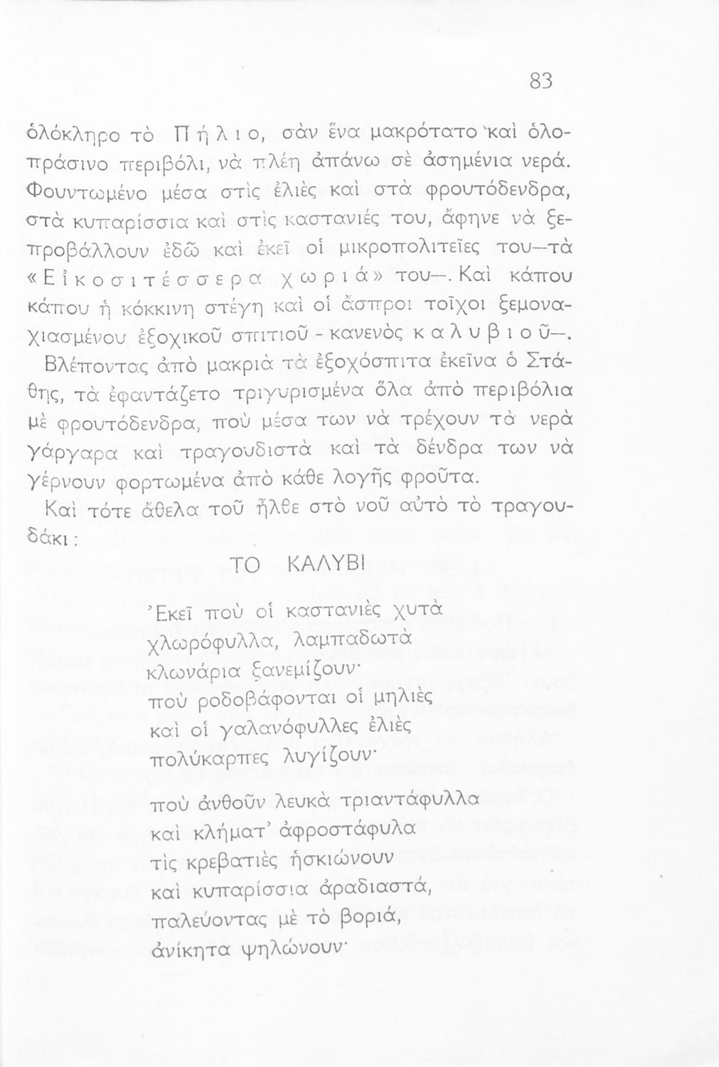 Αναγνωστικό για την Δ΄ τάξη του Δημοτικού. Περιλαμβάνει ένα κείμενο στο οποίο παρεμβάλλονται ποιήματα δημοτικά και Ελλήνων ποιητών.