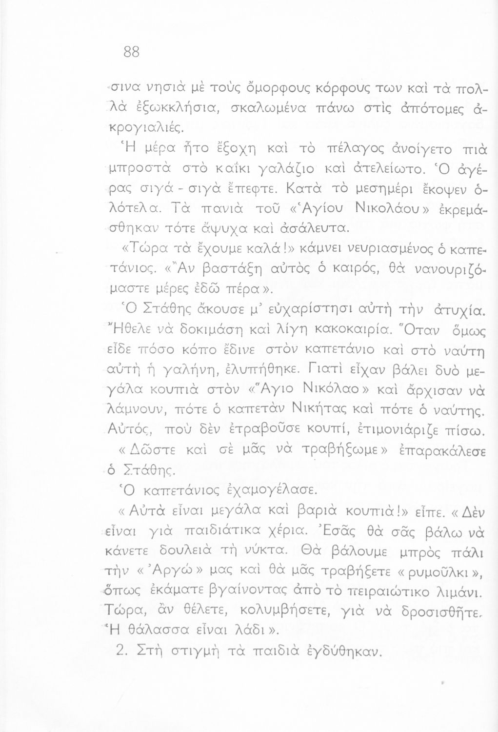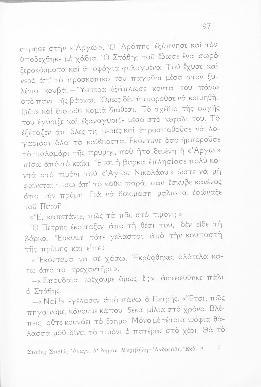 Αναγνωστικό της Δ΄ Τάξης Δημοτικού για το μάθημα της Γλώσσας. Περιλαμβάνει αφηγηματικές ιστορίες από τη ζωή του βασικού ήρωα Στάθη Σταθά. Οι εμπειρίες του ήρωα είναι κυρίως από τη θάλασσα. Περιέχει εικόνες, οι οποίες οπτικοποιούν τα κείμενα και βοηθούν στην διδασκαλία.