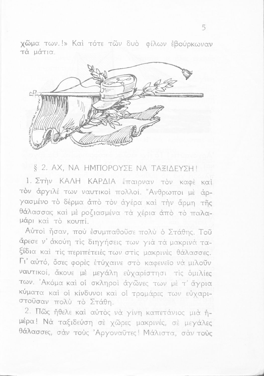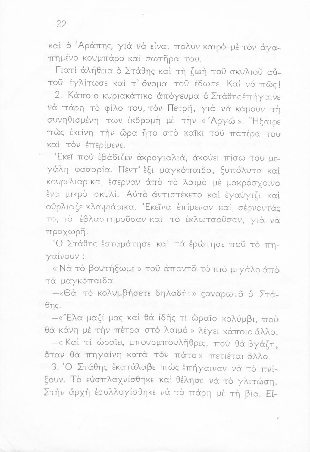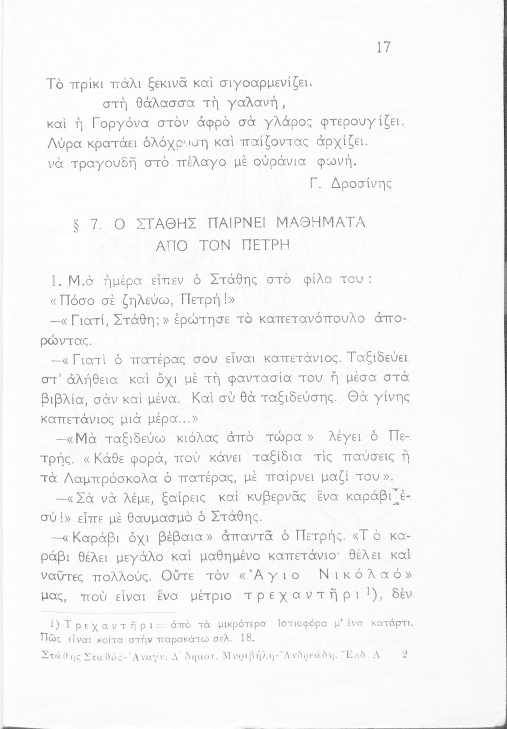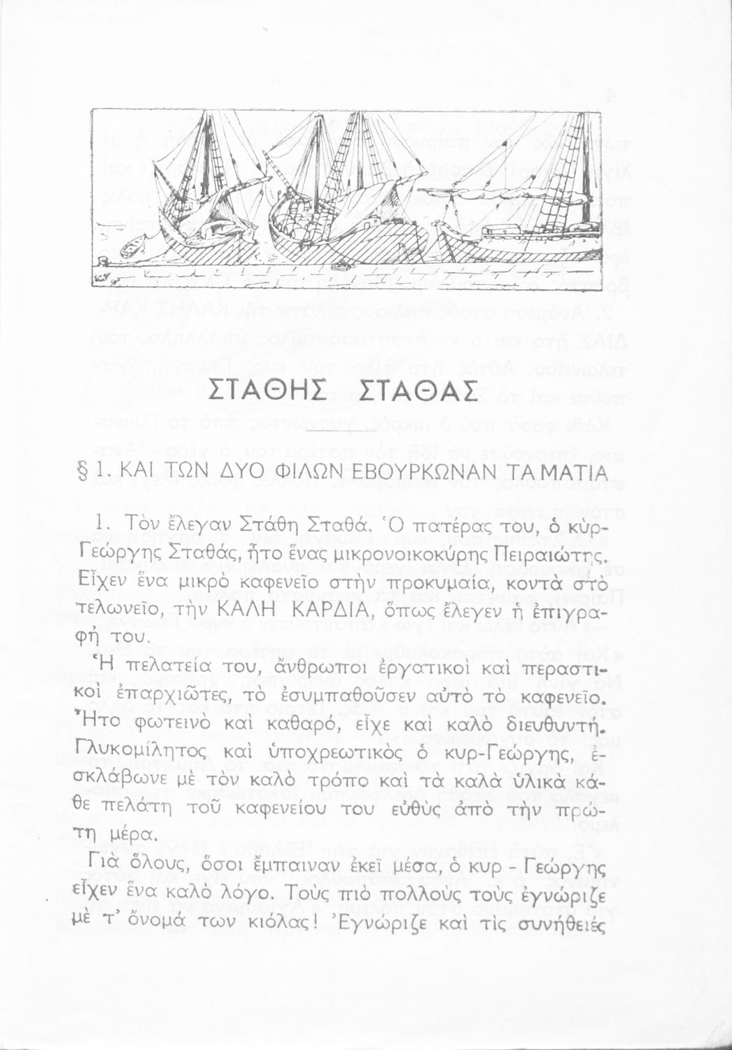 Βαθμίδα εκπαίδευσης: Πρωτοβάθμια Τάξη: Δ' Δημοτικού Μάθημα: Νέα Ελληνικά Γλώσσα: Απλή καθαρεύουσα Παρουσίαση περιεχομένου: Αναγνωστικό της Δ΄ Τάξης Δημοτικού για το μάθημα της Γλώσσας. Περιλαμβάνει αφηγηματικές ιστορίες από τη ζωή του βασικού ήρωα Στάθη Σταθά. Οι εμπειρίες του ήρωα είναι κυρίως από τη θάλασσα. Περιέχει εικόνες, οι οποίες οπτικοποιούν τα κείμενα και βοηθούν στην διδασκαλία. |