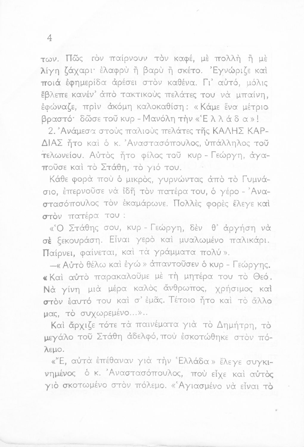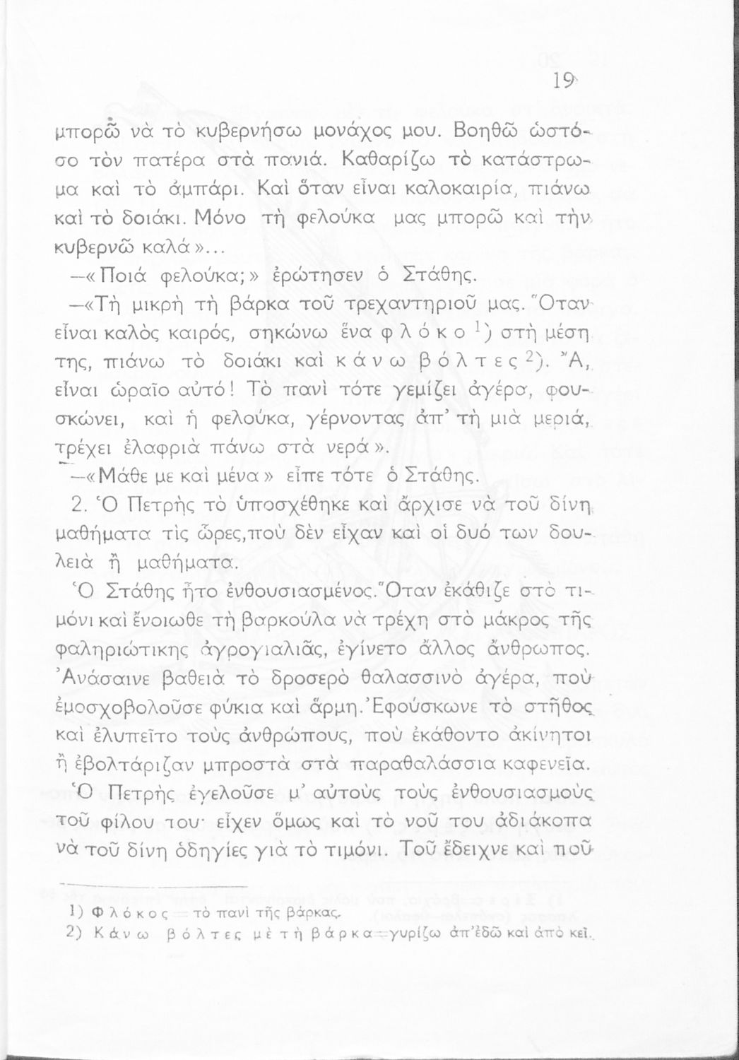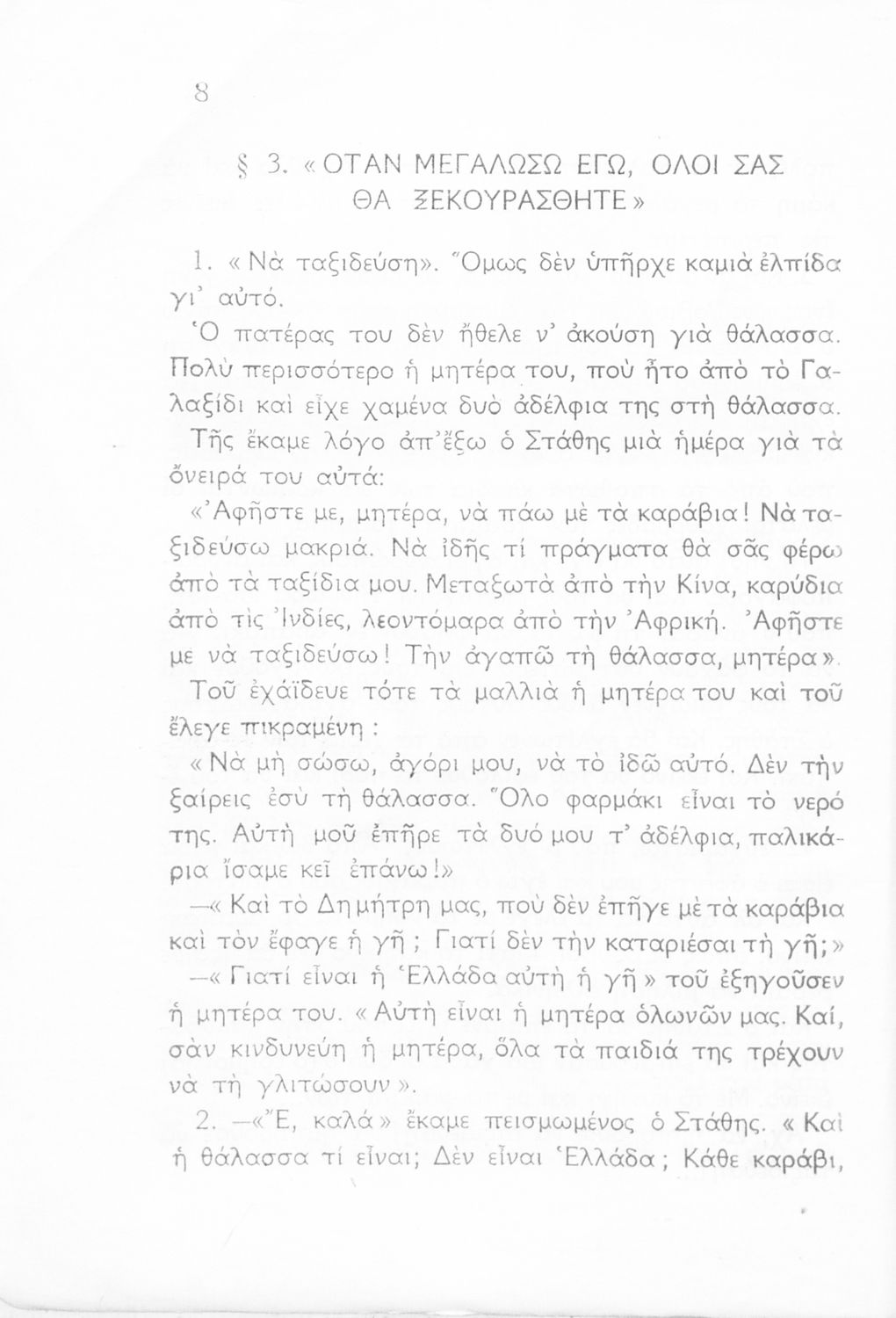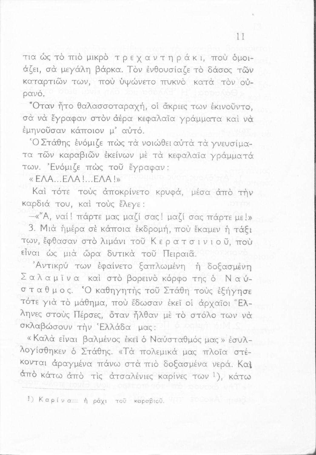 Βαθμίδα εκπαίδευσης: Πρωτοβάθμια Τάξη: Δ' Δημοτικού Μάθημα: Νέα Ελληνικά Γλώσσα: Απλή καθαρεύουσα Παρουσίαση περιεχομένου: Αναγνωστικό της Δ΄ Τάξης Δημοτικού για το μάθημα της Γλώσσας. Περιλαμβάνει αφηγηματικές ιστορίες από τη ζωή του βασικού ήρωα Στάθη Σταθά. Οι εμπειρίες του ήρωα είναι κυρίως από τη θάλασσα. Περιέχει εικόνες, οι οποίες οπτικοποιούν τα κείμενα και βοηθούν στην διδασκαλία. |