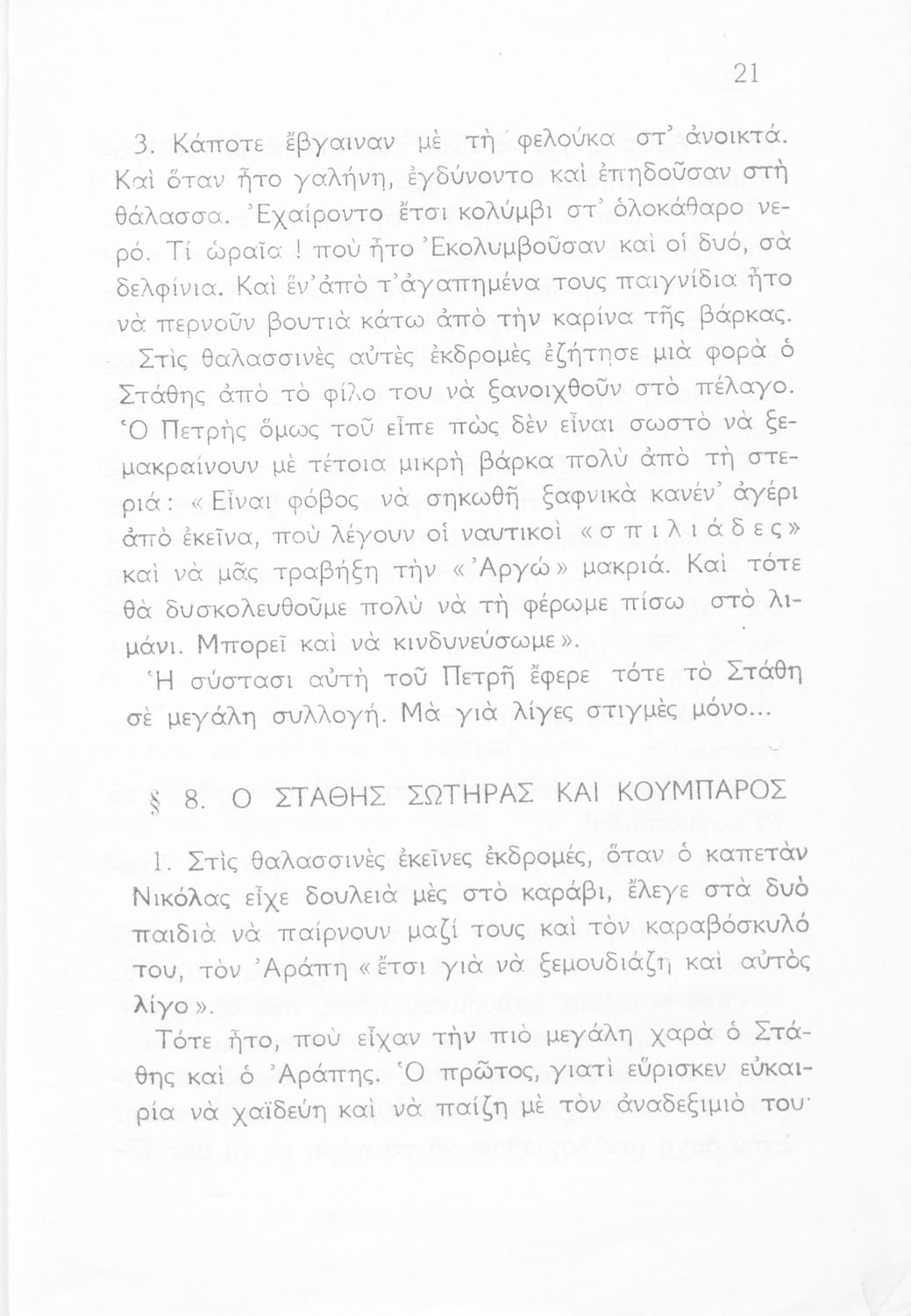 Αναγνωστικό της Δ΄ Τάξης Δημοτικού για το μάθημα της Γλώσσας. Περιλαμβάνει αφηγηματικές ιστορίες από τη ζωή του βασικού ήρωα Στάθη Σταθά. Οι εμπειρίες του ήρωα είναι κυρίως από τη θάλασσα. Περιέχει εικόνες, οι οποίες οπτικοποιούν τα κείμενα και βοηθούν στην διδασκαλία.