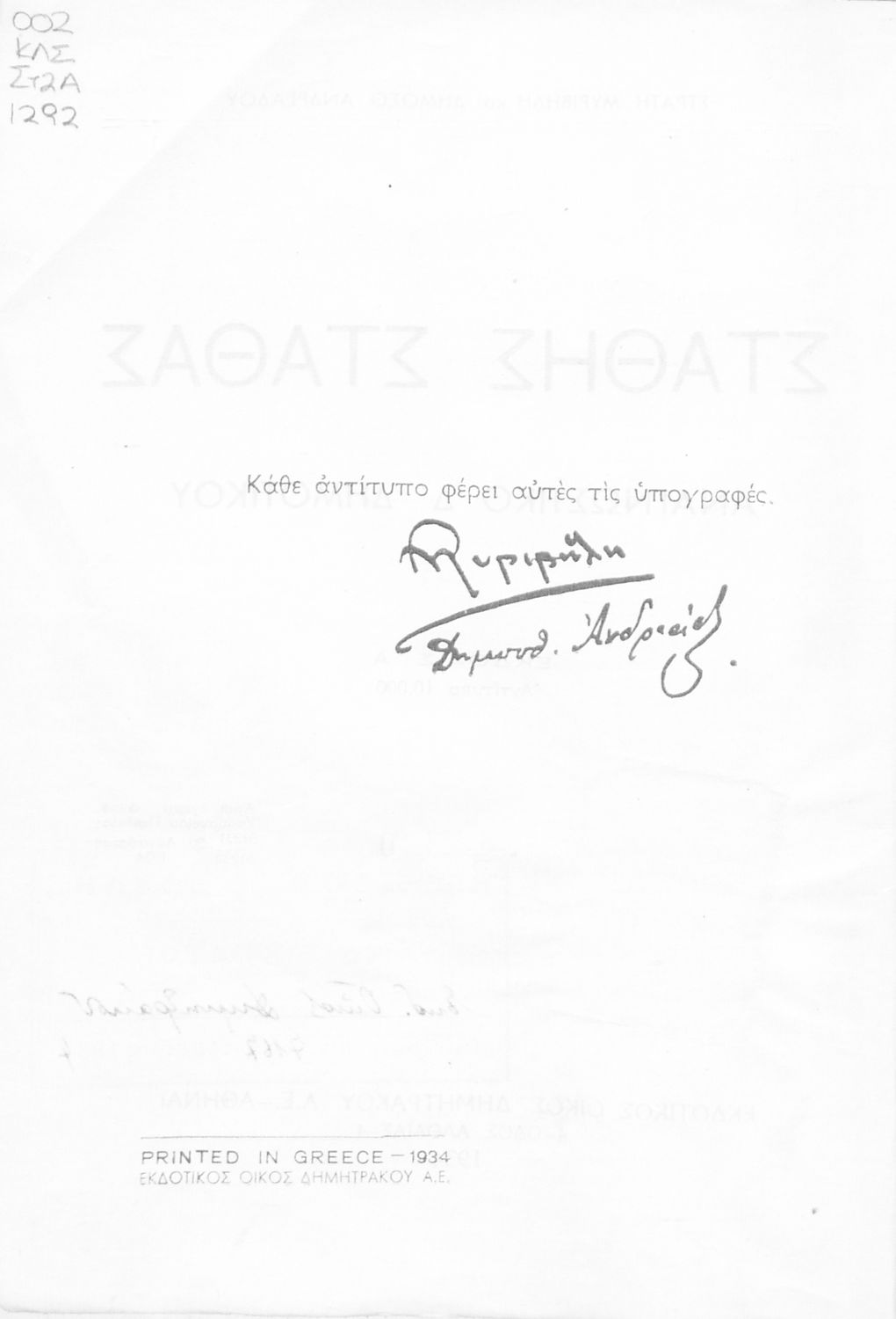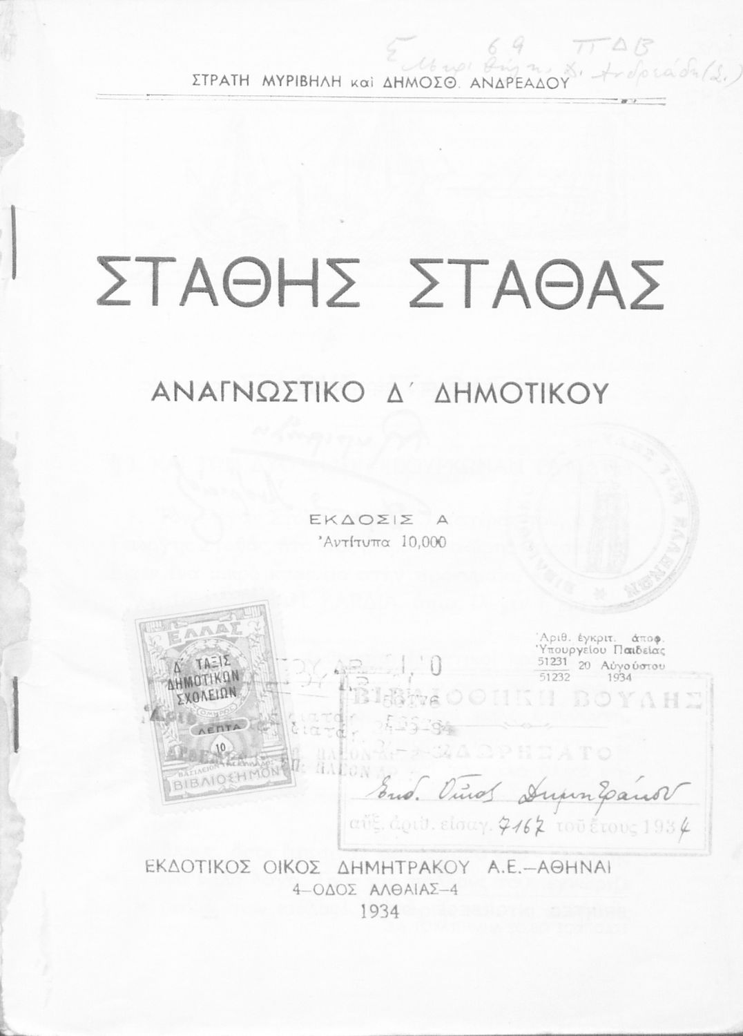 Εκδότης: Δημητράκος Έτος έκδοσης: 1934 Τόπος έκδοσης: Αθήνα Έκδοση: 1η Υπουργική απόφαση / Σύμβαση: 51231, 51232/ 20-8-1934 Έτος έγκρισης: 1934 |