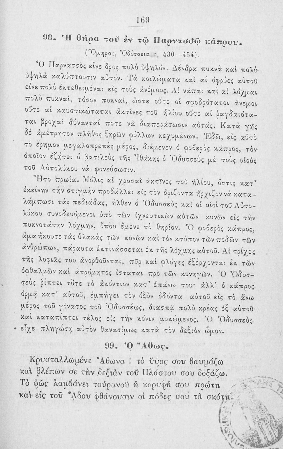 Βαθμίδα εκπαίδευσης: Πρωτοβάθμια Τάξη: Δ' Δημοτικού Μάθημα: Νέα Ελληνικά Γλώσσα: Απλή καθαρεύουσα Παρουσίαση περιεχομένου: Αναγνωστικό Δ' Δημοτικού που περιλαμβάνει πεζά και ποιήματα, ηθικοπλαστικού περιεχομένου, εμπνευσμένα από την ελληνική μυθολογία και το φυσικό περιβάλλον, με σκοπό να προβάλει αξίες και αρετές όπως η τιμιότητα, η ευσπλαχνία, η γενναιότητα, η αγάπη, η φιλοπατρία, κι η ευγνωμοσύνη. |