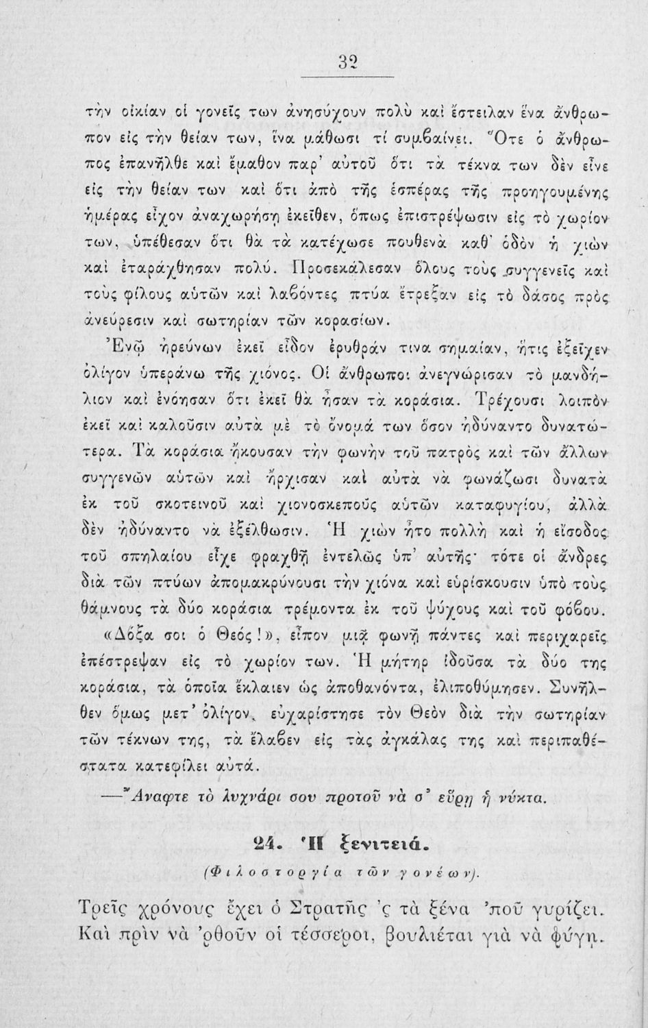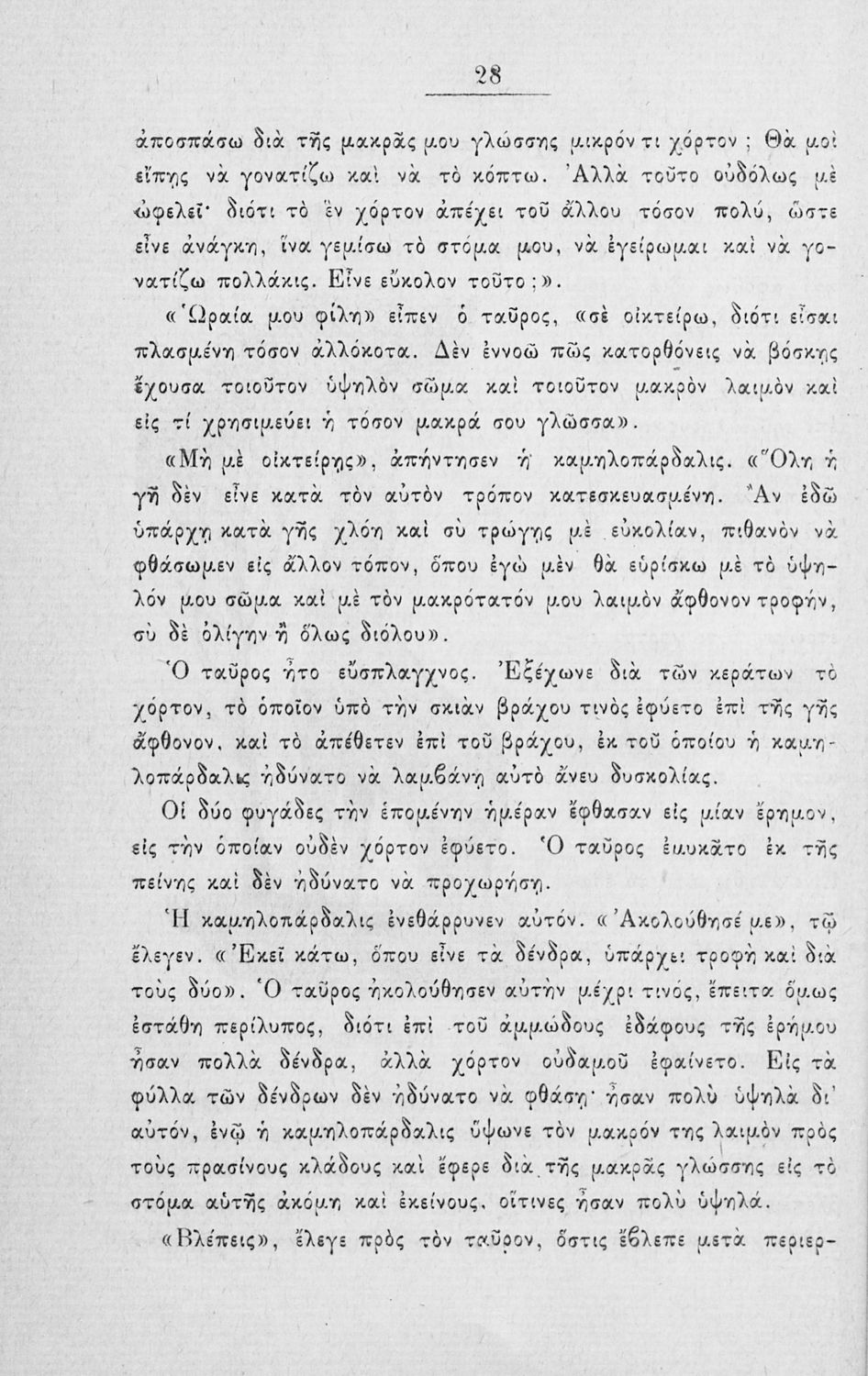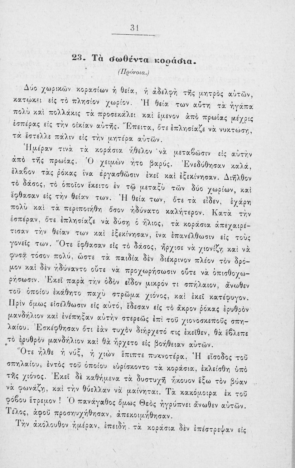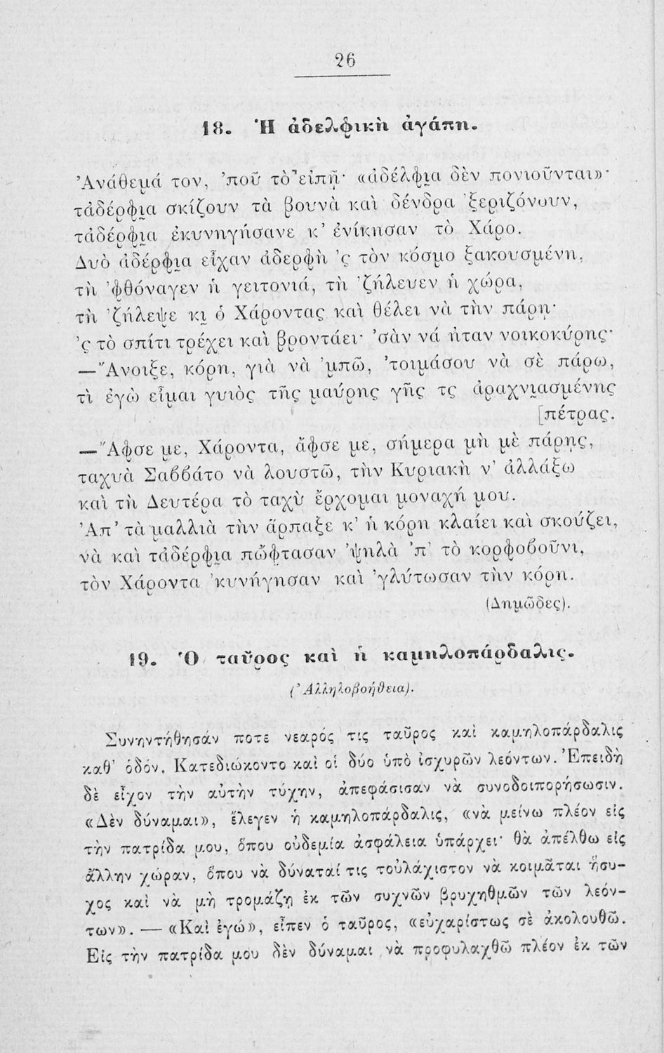 Βαθμίδα εκπαίδευσης: Πρωτοβάθμια Τάξη: Δ' Δημοτικού Μάθημα: Νέα Ελληνικά Γλώσσα: Απλή καθαρεύουσα Παρουσίαση περιεχομένου: Αναγνωστικό Δ' Δημοτικού που περιλαμβάνει πεζά και ποιήματα, ηθικοπλαστικού περιεχομένου, εμπνευσμένα από την ελληνική μυθολογία και το φυσικό περιβάλλον, με σκοπό να προβάλει αξίες και αρετές όπως η τιμιότητα, η ευσπλαχνία, η γενναιότητα, η αγάπη, η φιλοπατρία, κι η ευγνωμοσύνη. |