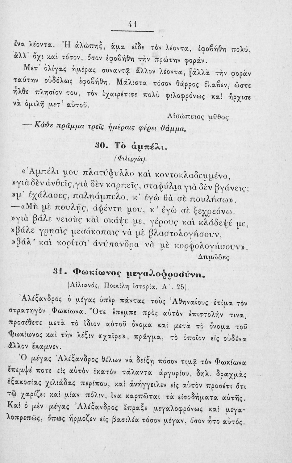 Αναγνωστικό Δ' Δημοτικού που περιλαμβάνει πεζά και ποιήματα, ηθικοπλαστικού περιεχομένου, εμπνευσμένα από την ελληνική μυθολογία και το φυσικό περιβάλλον, με σκοπό να προβάλει αξίες και αρετές όπως η τιμιότητα, η ευσπλαχνία, η γενναιότητα, η αγάπη, η φιλοπατρία, κι η ευγνωμοσύνη.