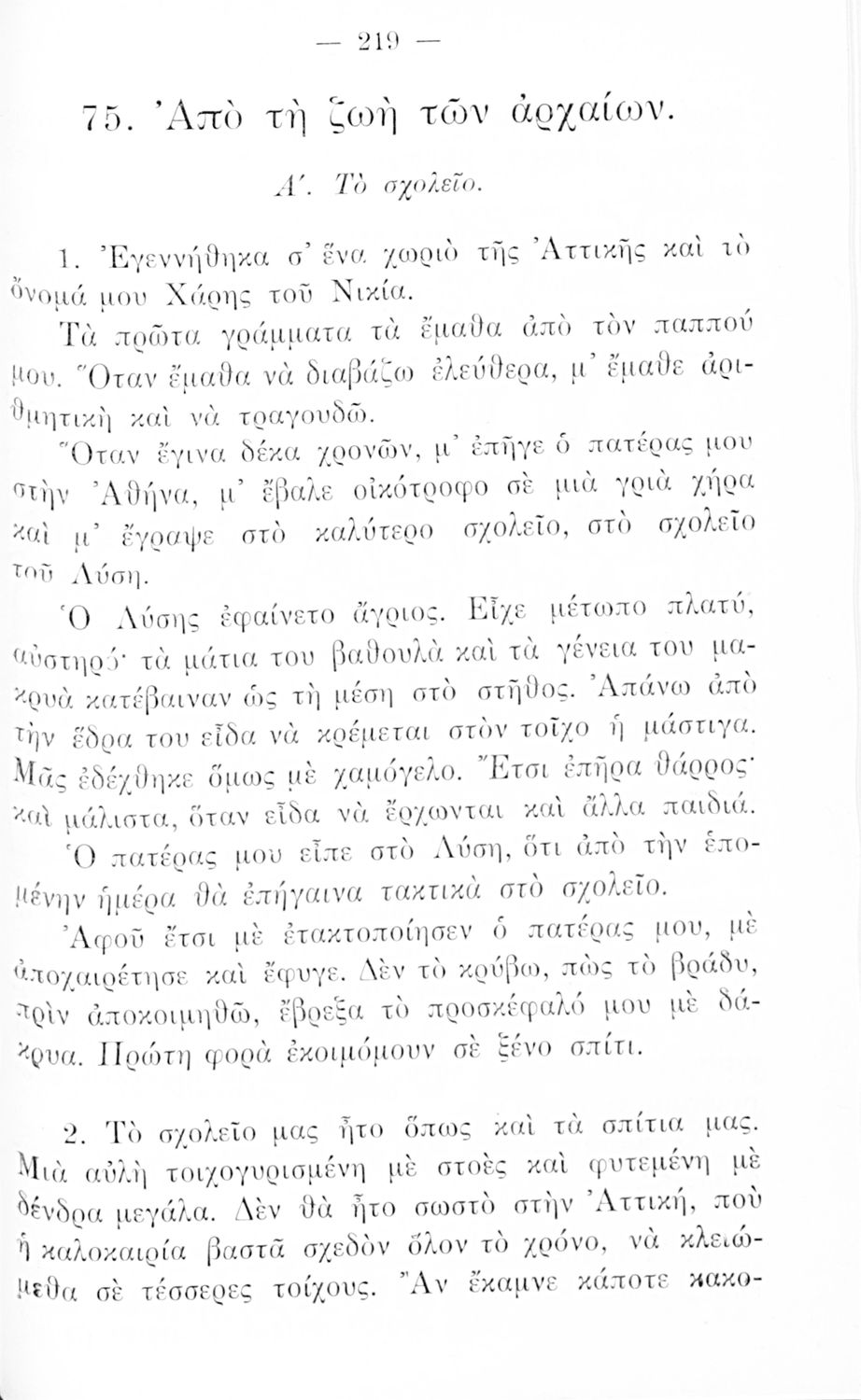 Γλώσσα: Δημοτική με στοιχεία καθαρεύουσας