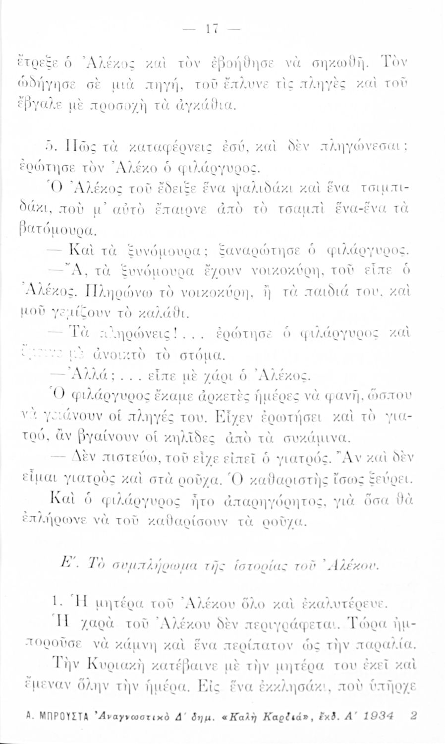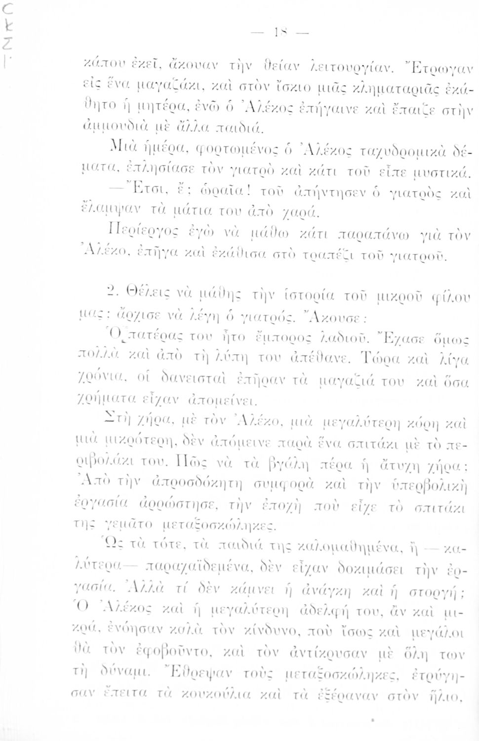 Αναγνωστικό για τους μαθητές της Δ΄ Δημοτικού που περιλαμβάνει ποιήματα και πεζά με θέματα από την καθημερινή ζωή των Ελλήνων και την θρησκεία τους.