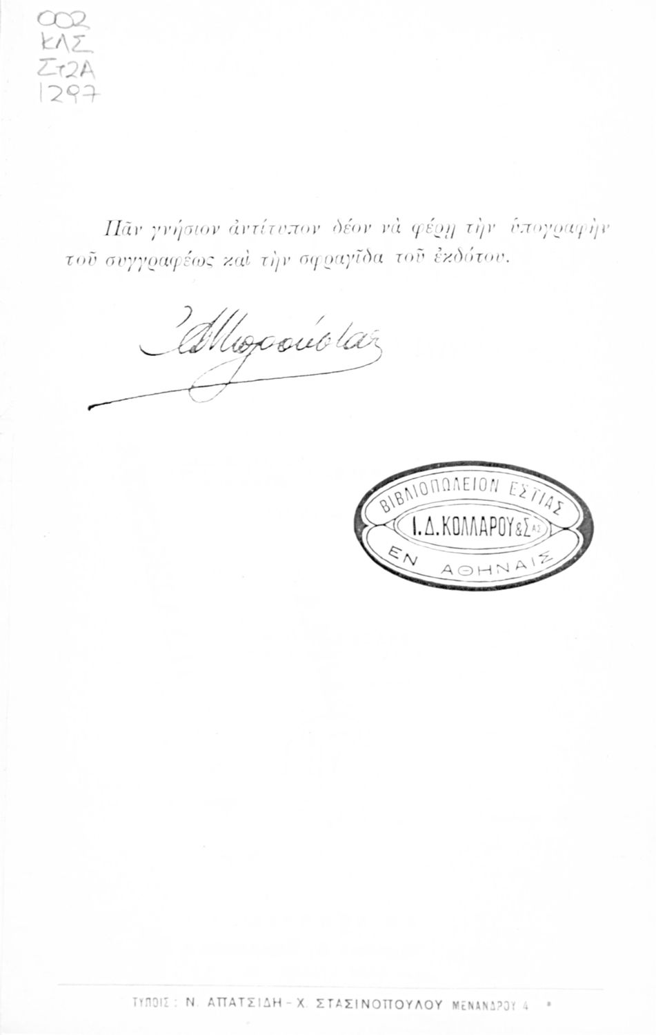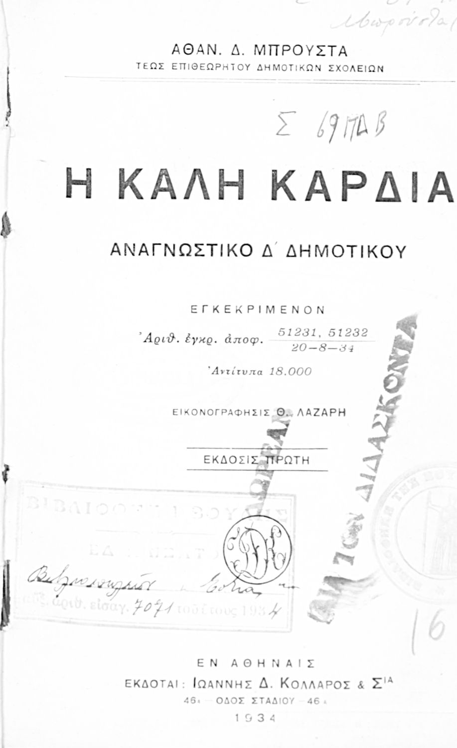 Εκδότης: Ιωάννης Δ. Κολλάρος Έτος έκδοσης: 1934 Τόπος έκδοσης: Αθήνα Έκδοση: 1η Υπουργική απόφαση / Σύμβαση: 51231/51232/20-8-1934 Έτος έγκρισης: 1934 |