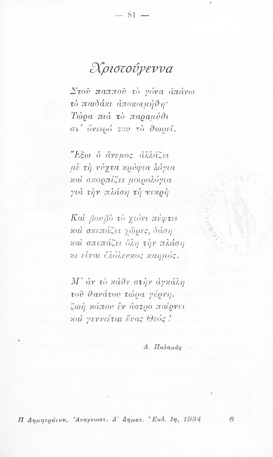 Εκδότης: Ιωάννης Δ. Κολλάρος και ΣΙΑ, Βιβλιοπωλείο της "Εστίας" Έτος έκδοσης: 1934 Τόπος έκδοσης: Αθήνα Έκδοση: 1η Υπουργική απόφαση / Σύμβαση: 51231, 51232/ 20-8-1934 Έτος έγκρισης: 1934 |