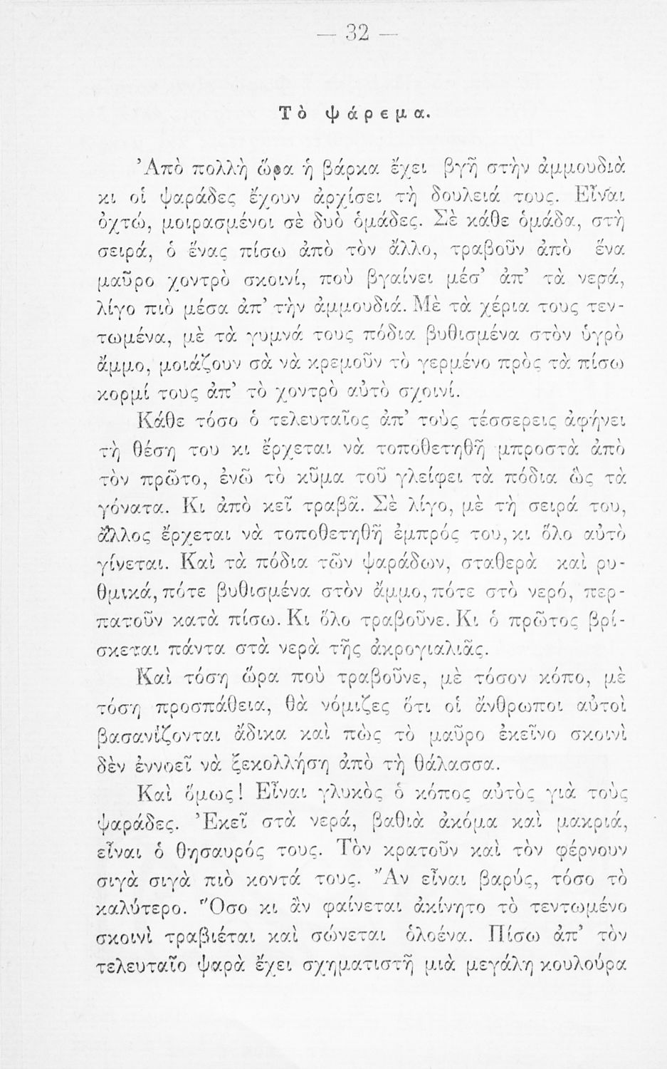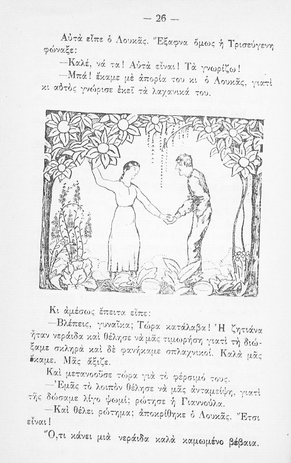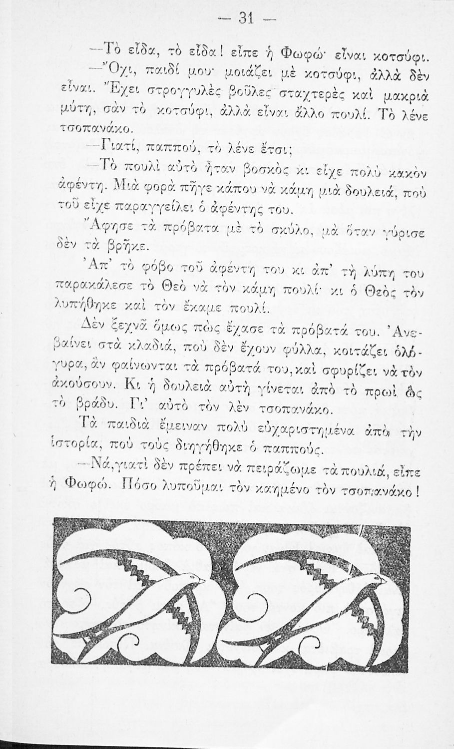 Αναγνωστικό Δ΄ Δημοτικού που περιέχει πεζά και ποιήματα με περιεχόμενο διδακτικό και ηθικοπλαστικό εμπνευσμένα από την ελληνική ιστορία και μυθολογία, και την αγροτική και κοινωνική ζωή.