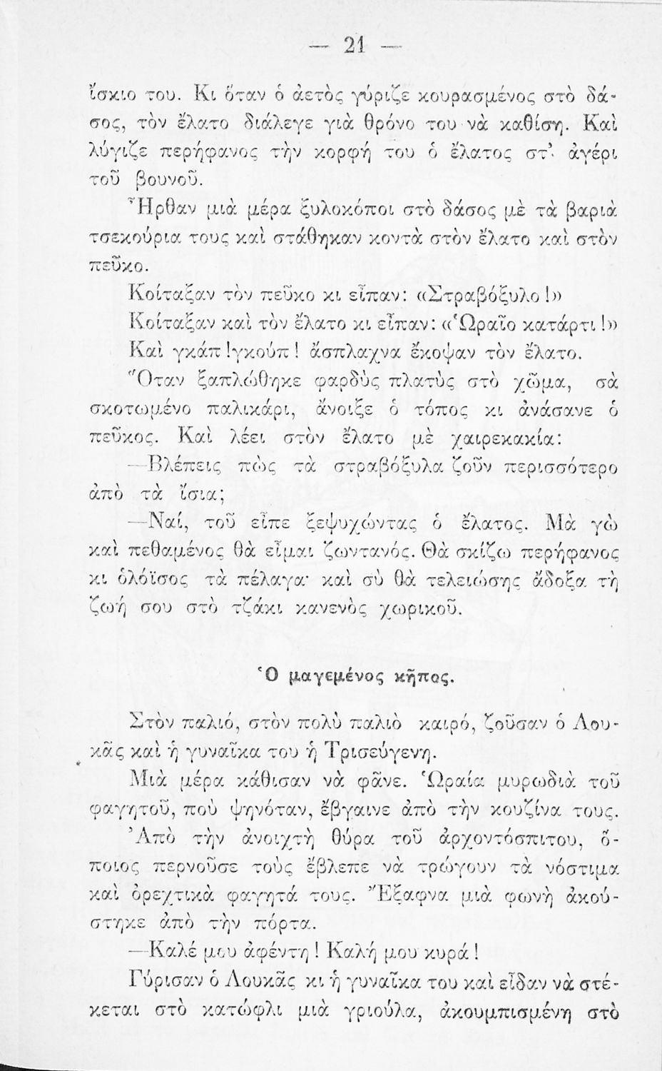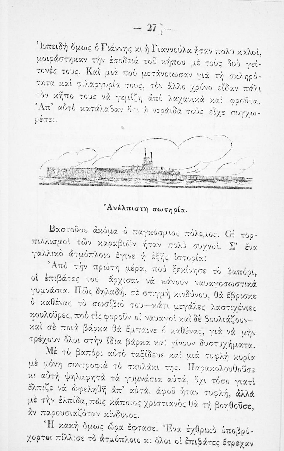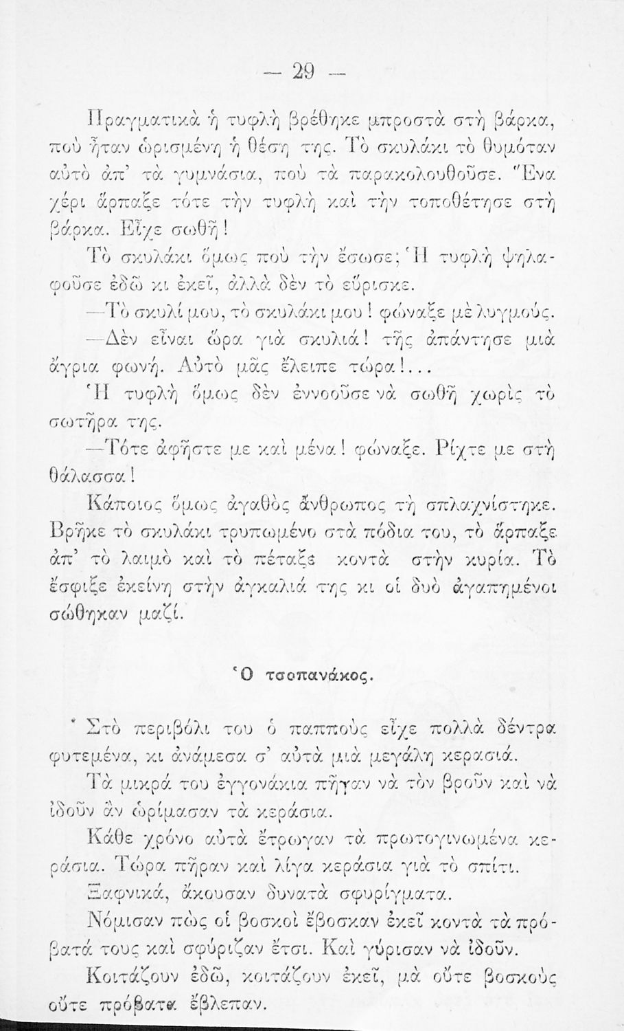 Αναγνωστικό Δ΄ Δημοτικού που περιέχει πεζά και ποιήματα με περιεχόμενο διδακτικό και ηθικοπλαστικό εμπνευσμένα από την ελληνική ιστορία και μυθολογία, και την αγροτική και κοινωνική ζωή.