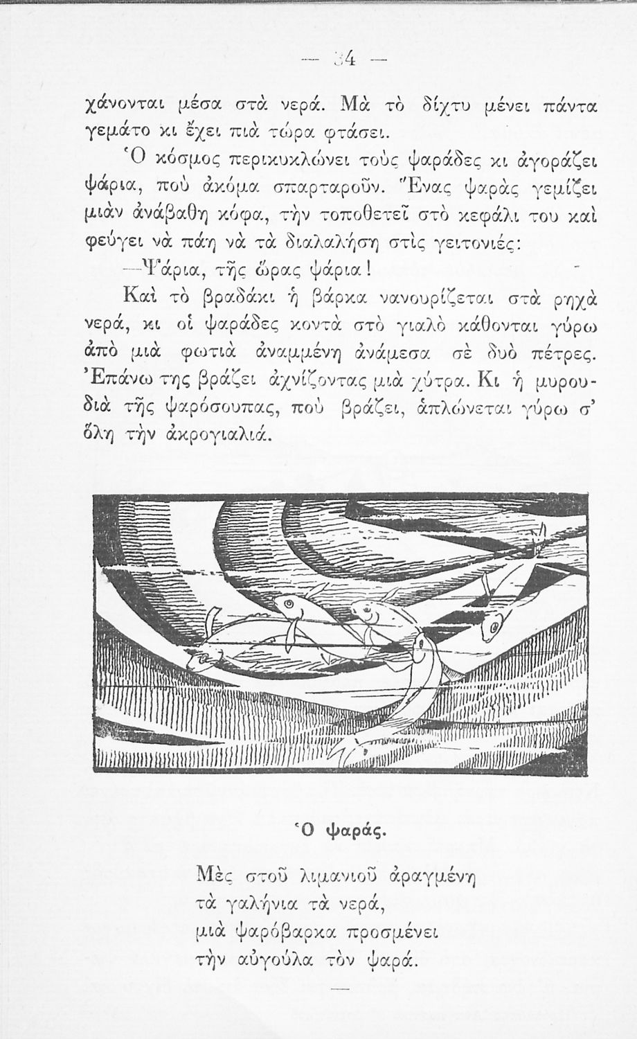 Αναγνωστικό για την Δ΄ τάξη του Δημοτικού. Περιλαμβάνει ένα κείμενο στο οποίο παρεμβάλλονται ποιήματα δημοτικά και Ελλήνων ποιητών.