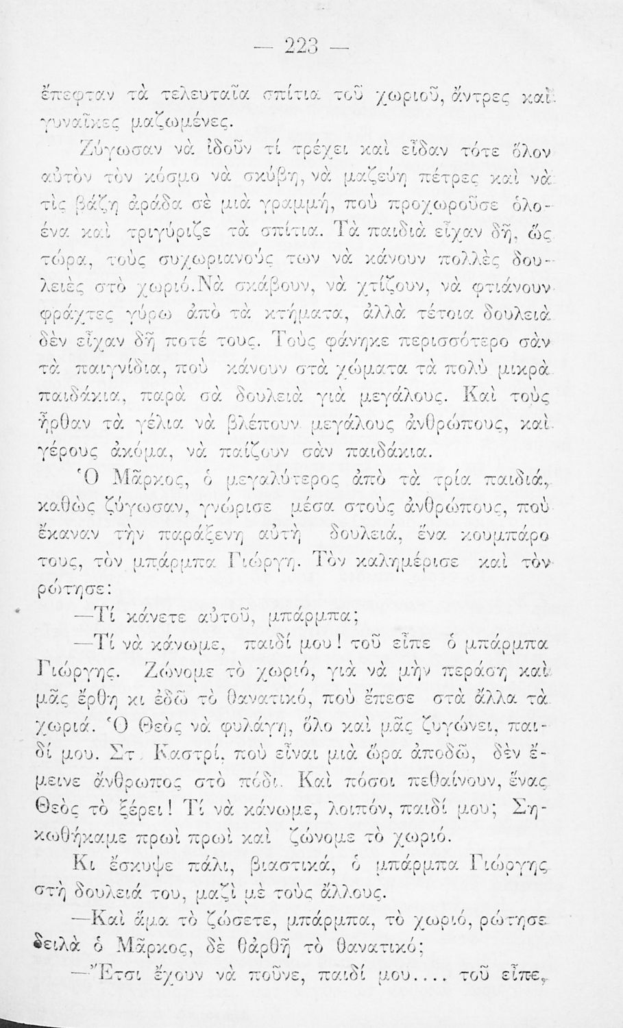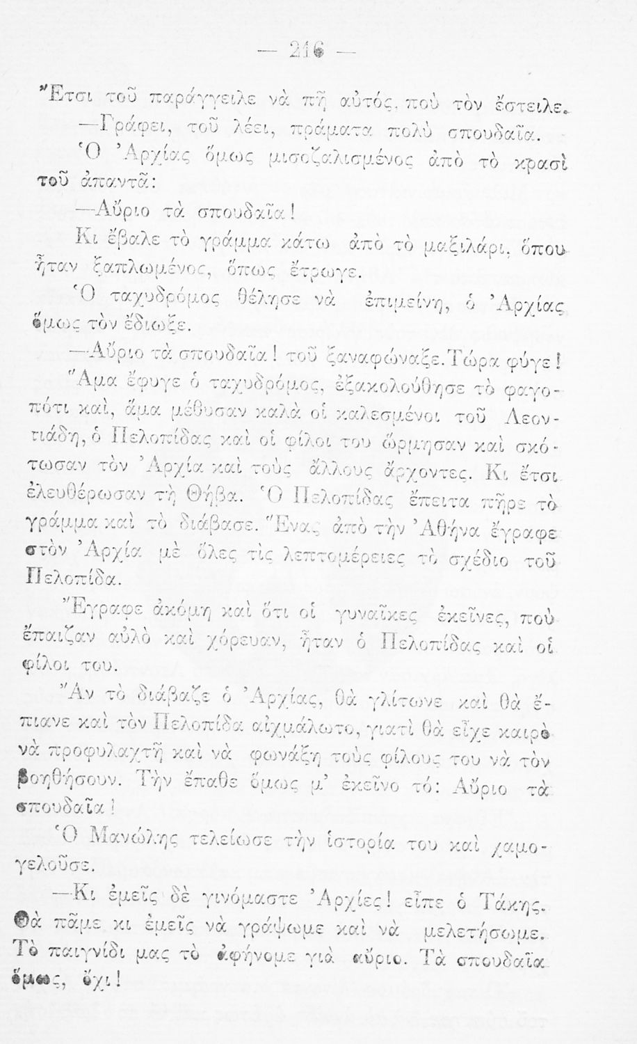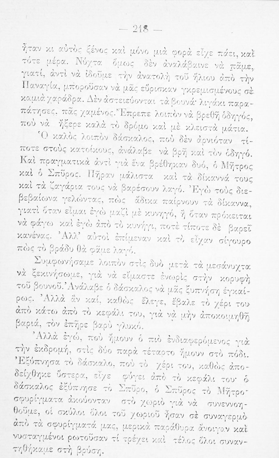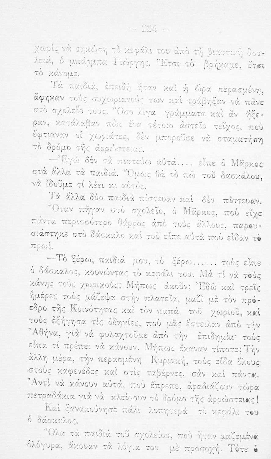 Αναγνωστικό Δ΄ Δημοτικού που περιέχει πεζά και ποιήματα με περιεχόμενο διδακτικό και ηθικοπλαστικό εμπνευσμένα από την ελληνική ιστορία και μυθολογία, και την αγροτική και κοινωνική ζωή.