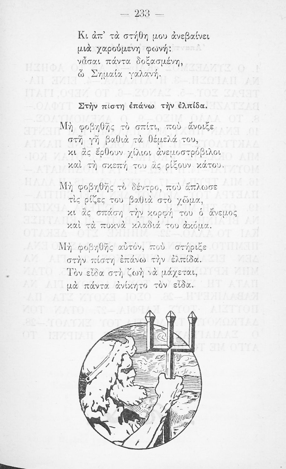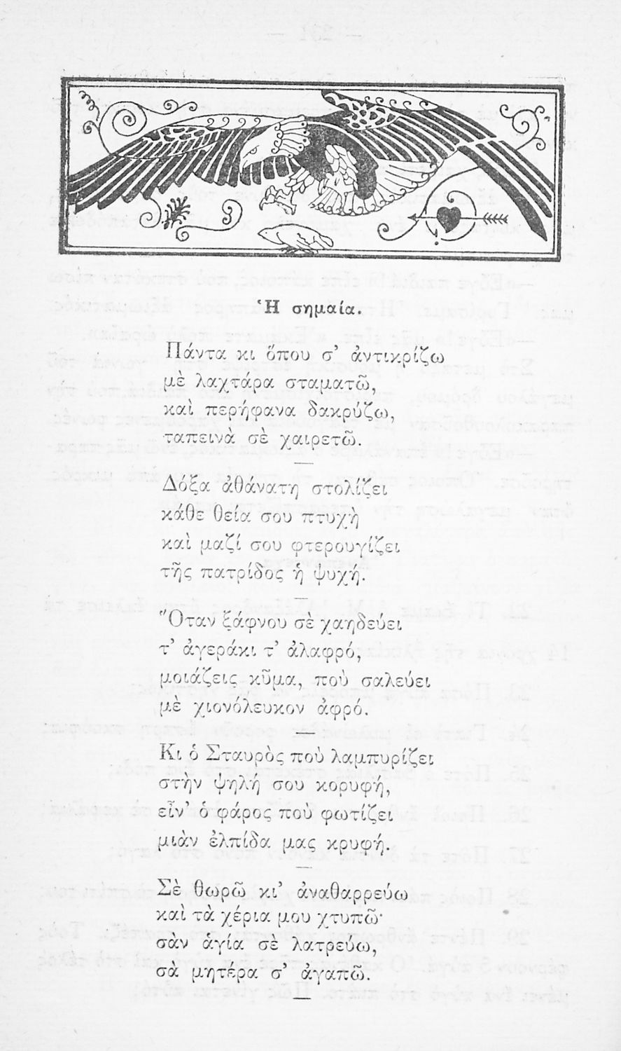 Αναγνωστικό για την Δ΄ τάξη του Δημοτικού. Περιλαμβάνει ένα κείμενο στο οποίο παρεμβάλλονται ποιήματα δημοτικά και Ελλήνων ποιητών.