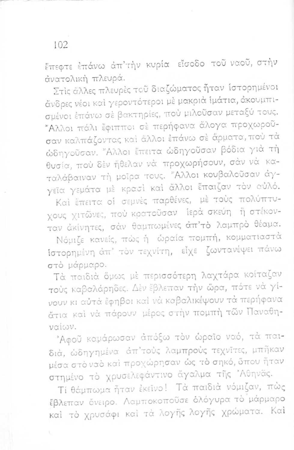 Αναγνωστικό Δ΄ Δημοτικού που περιλαμβάνει θέματα από την θρησκευτική, οικογενειακή και σχολική ζωή του παιδιού, την ελληνική μυθολογία και ιστορία και τη ζωή των ζώων.