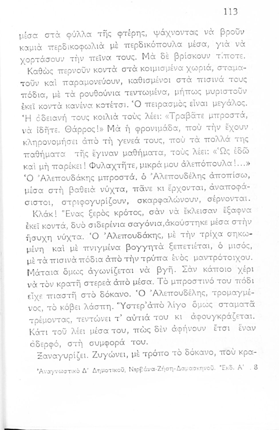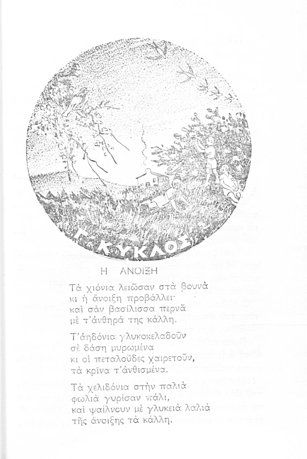 Αναγνωστικό Γ' Δημοτικού που περιέχει πεζά και ποιήματα εμπνευσμένα από τη θρησκευτική, εθνική, κοινωνική και ατομική ζωή, και την ελληνική φύση, ιστορία και μυθολογία.